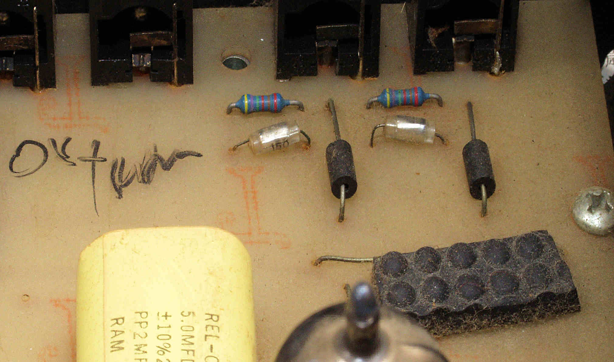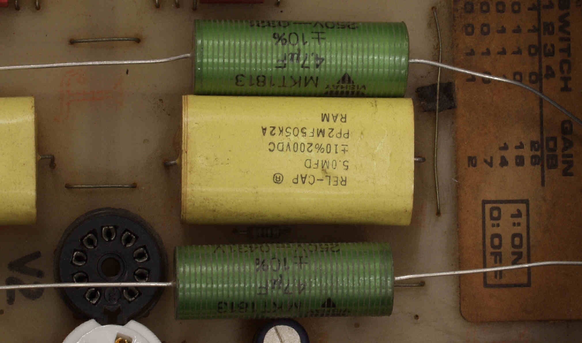A52. 点検中 カップリングコンデンサー比較、交換するのはVISHAY MTK1813 シリーズ。
