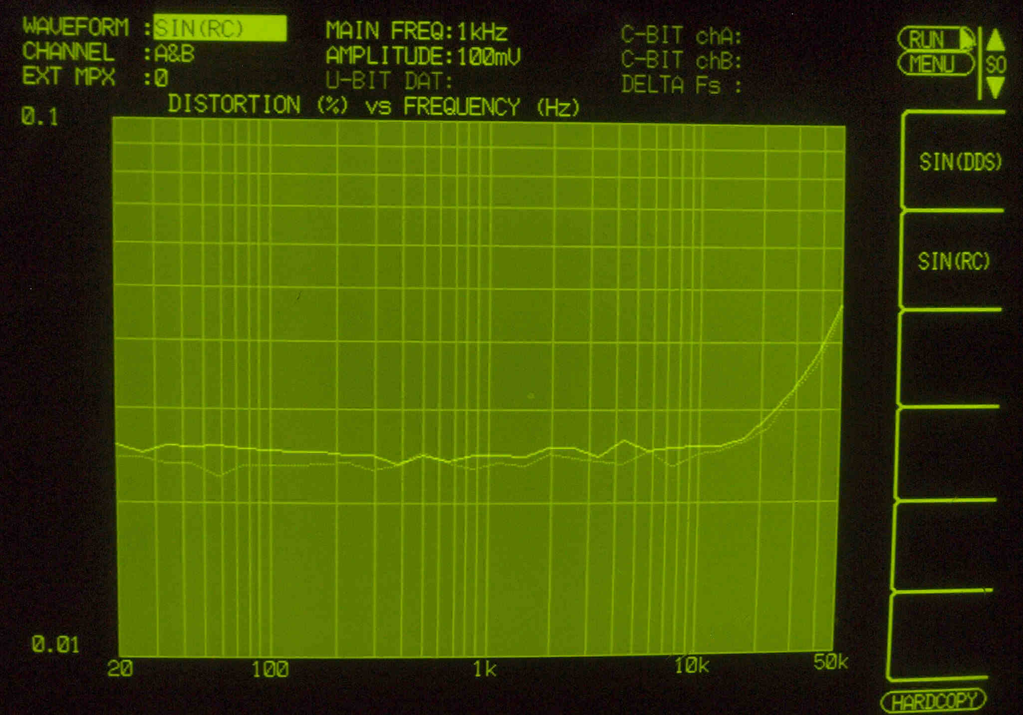 | F2. 入出力歪み測定。TUNER入力端子に100mVを入力。 VRはMax位置。 | ||||||||||||||||||||||||||||||||||||