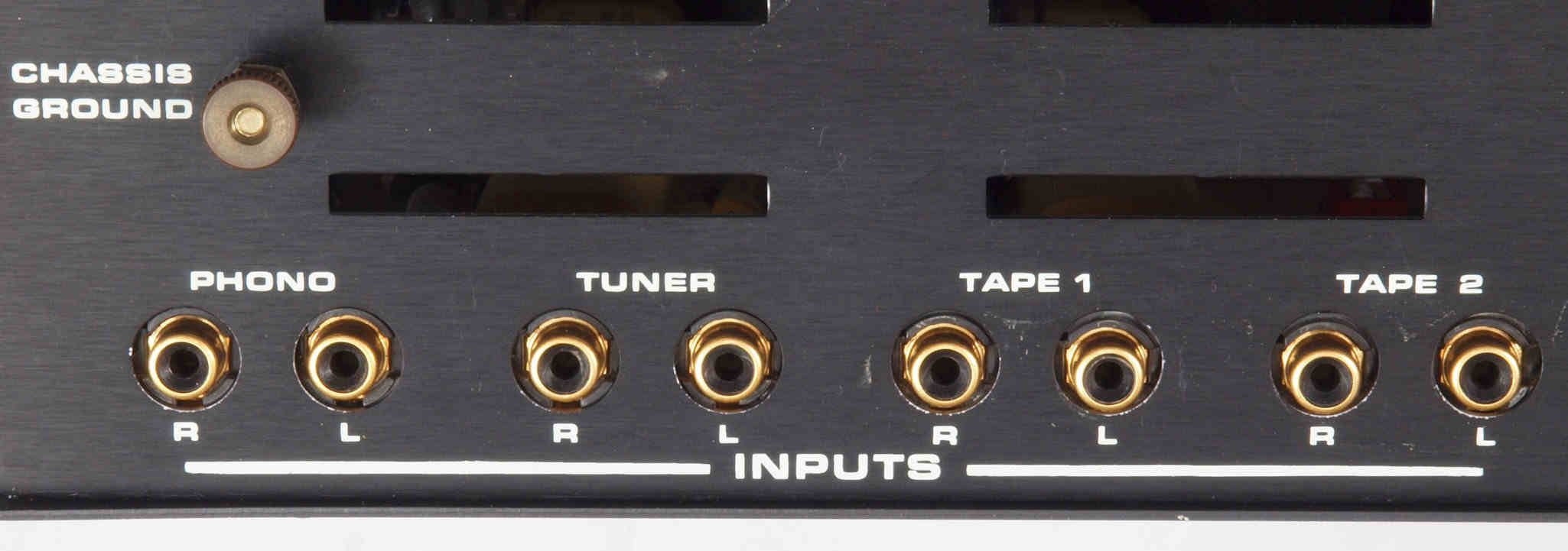 | A32. 点検中 入力RCA端子郡。 テフロン絶縁RCA端子に交換可能、今回見送り。 | ||||||||||||||||||||||||||||||||||||
