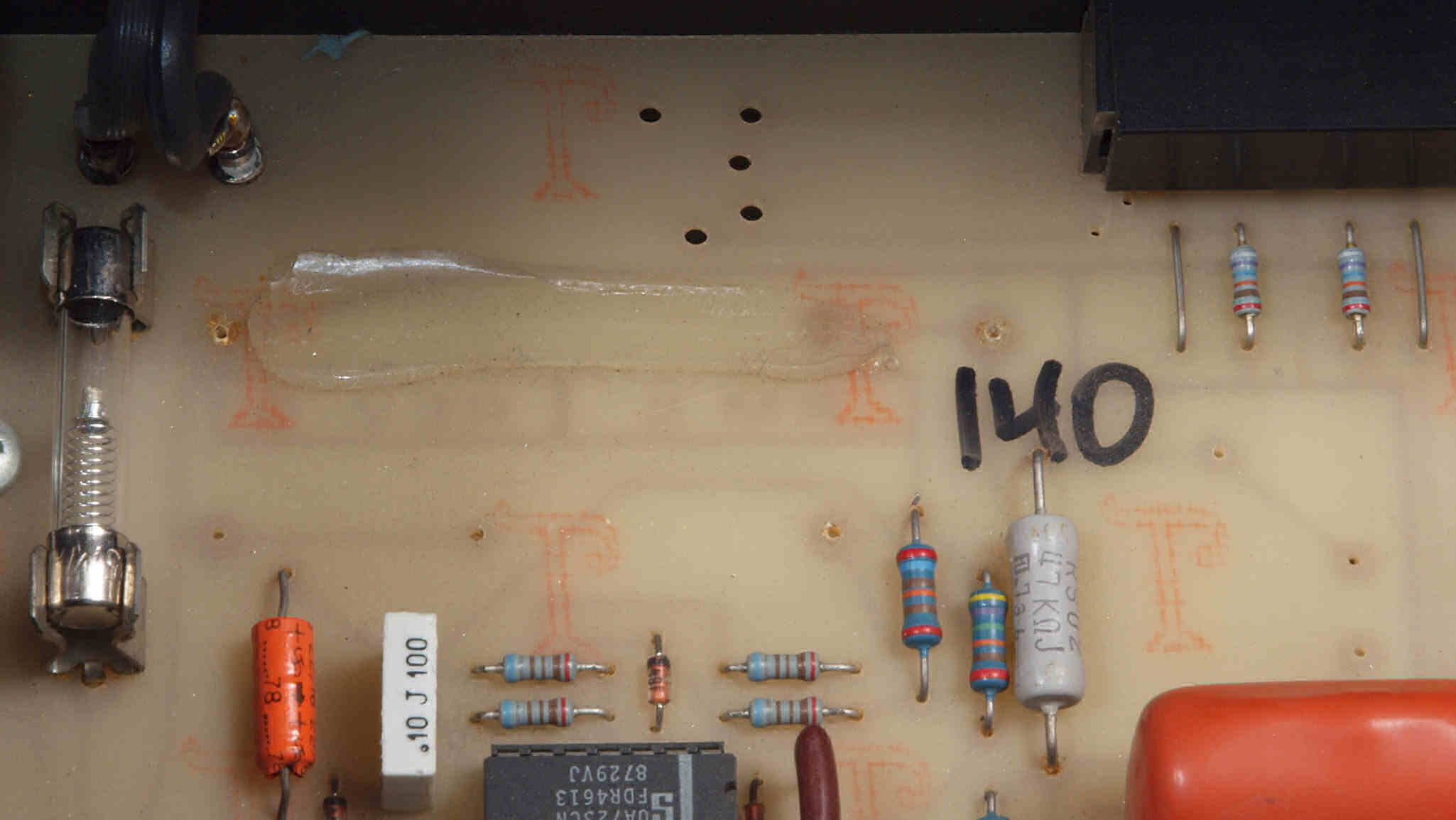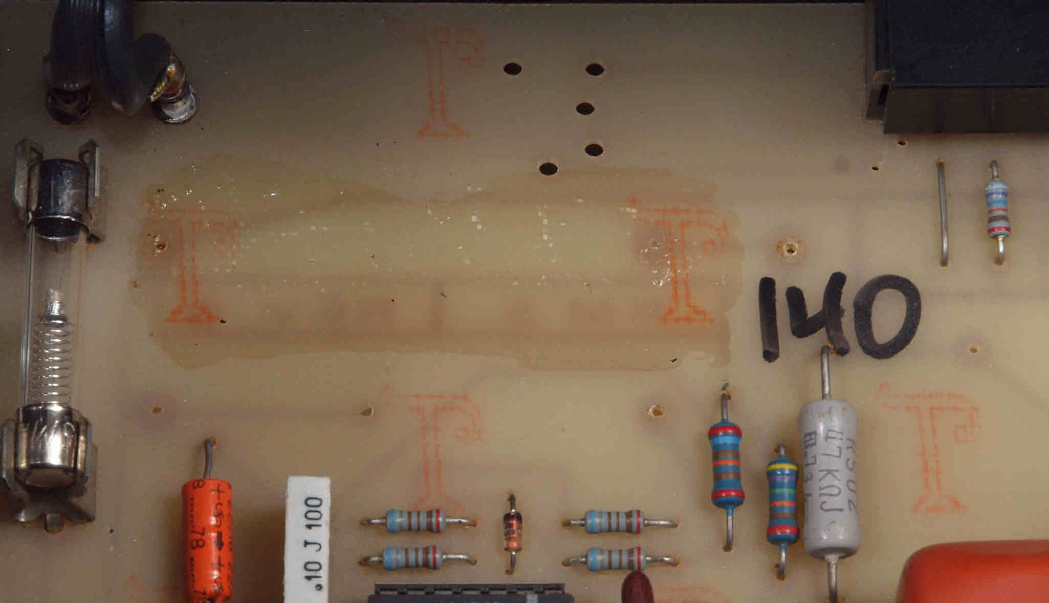 | C112. 修理中 基板。 電解コンデンサー固定接着剤。 | ||||||||||||||||||||||||||||||||||||