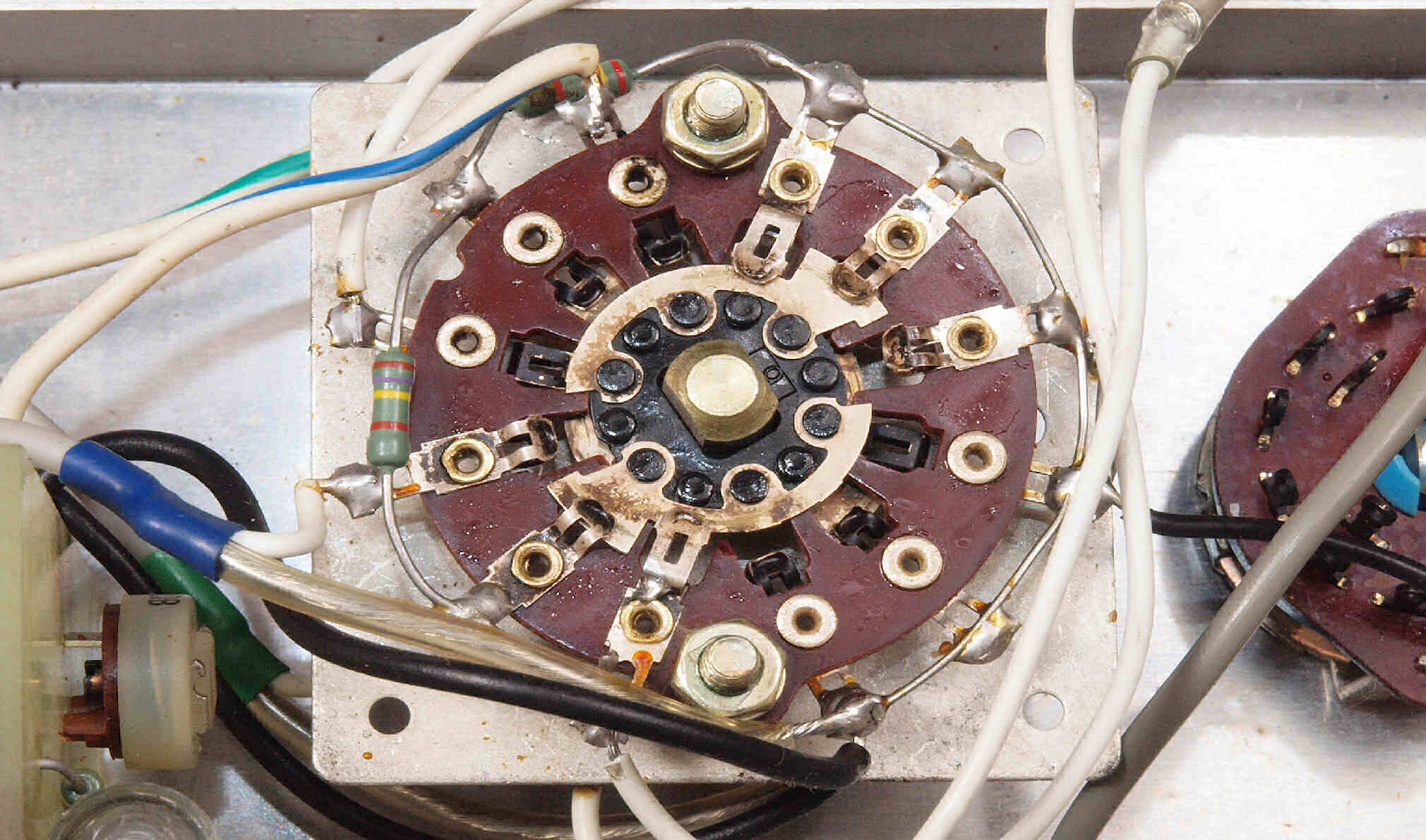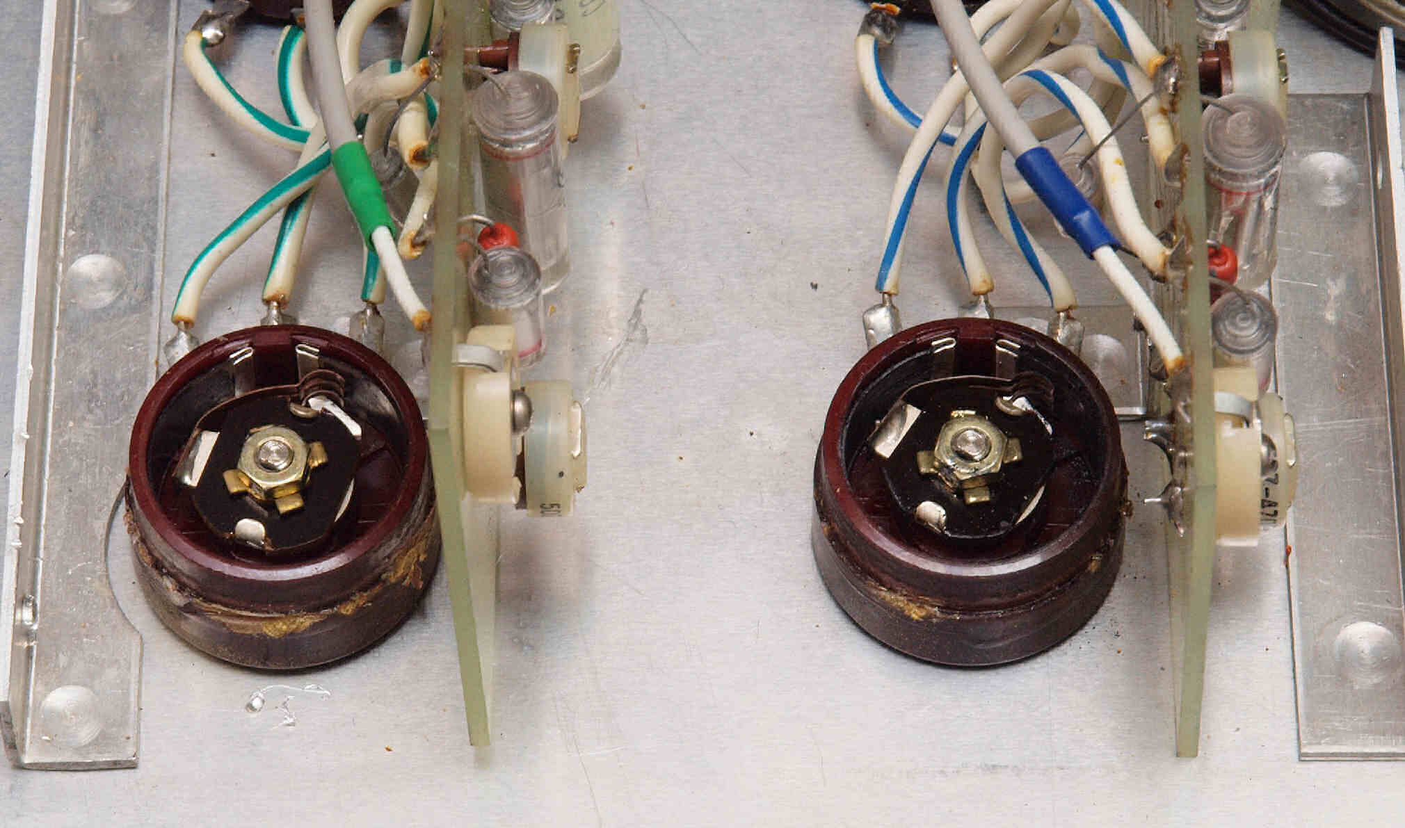 A63. 点検中 真空管ソケット拡大、 左=タイト製、 右=テフロン製が選択出来る。