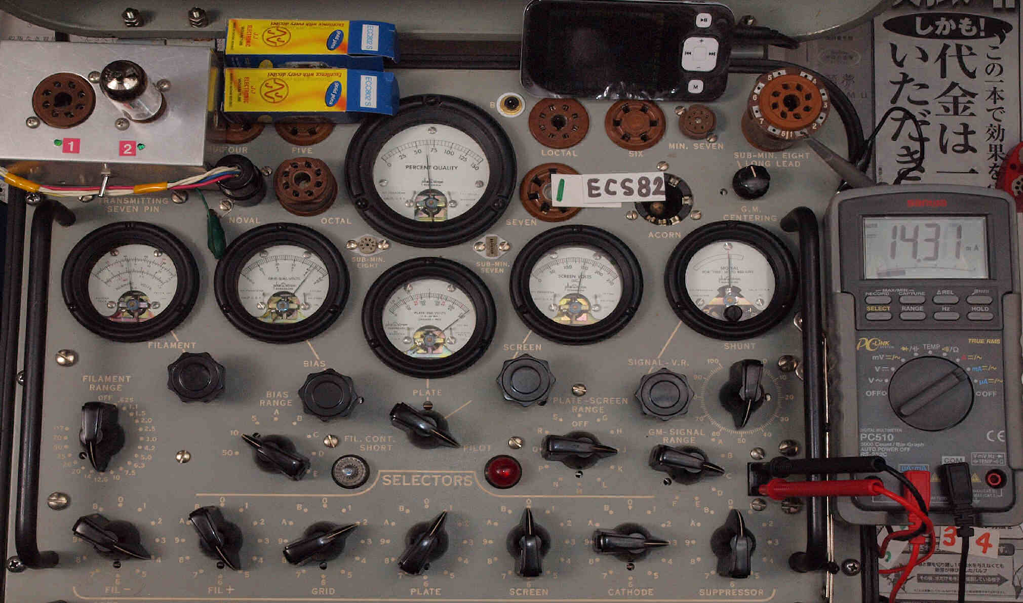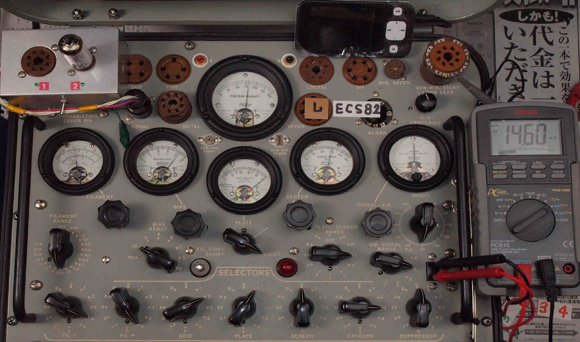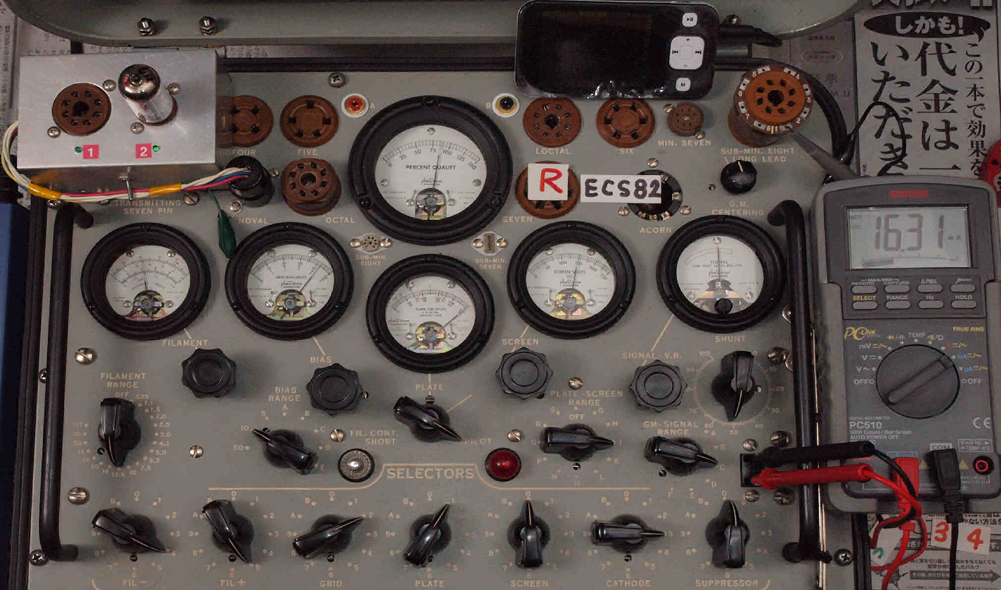 V51. 購入1本目「ECC82」ユニット1。 Gm測定=2600μmho、IP=14.31mA。