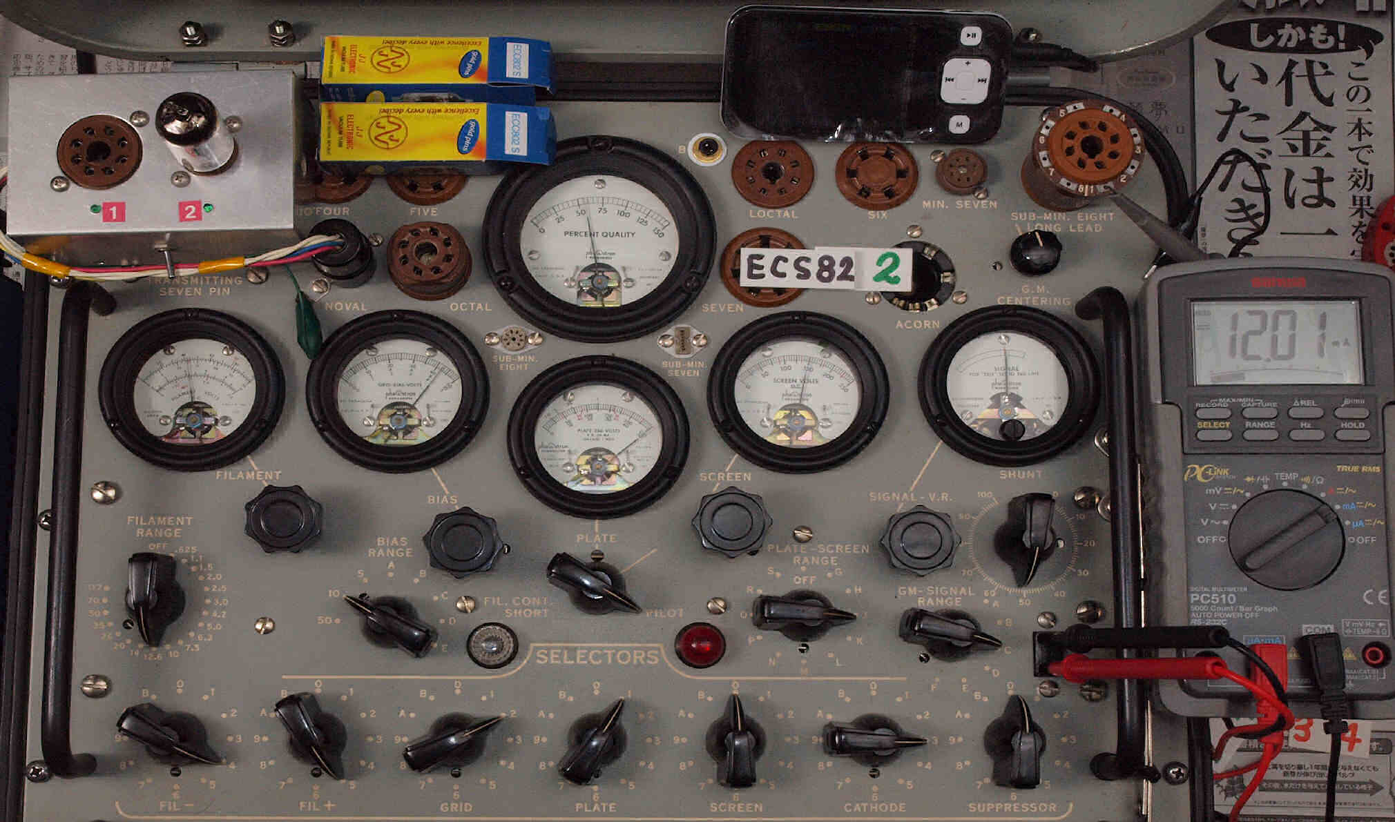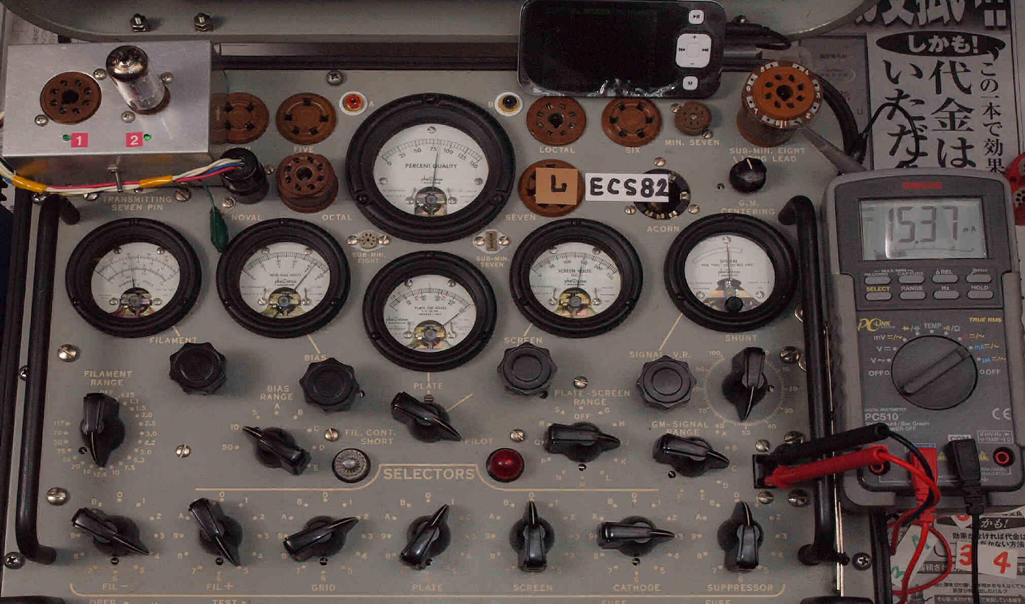 V52. 購入1本目「ECC82」ユニット2。 Gm測定=2800μmho、IP=15.30mA。