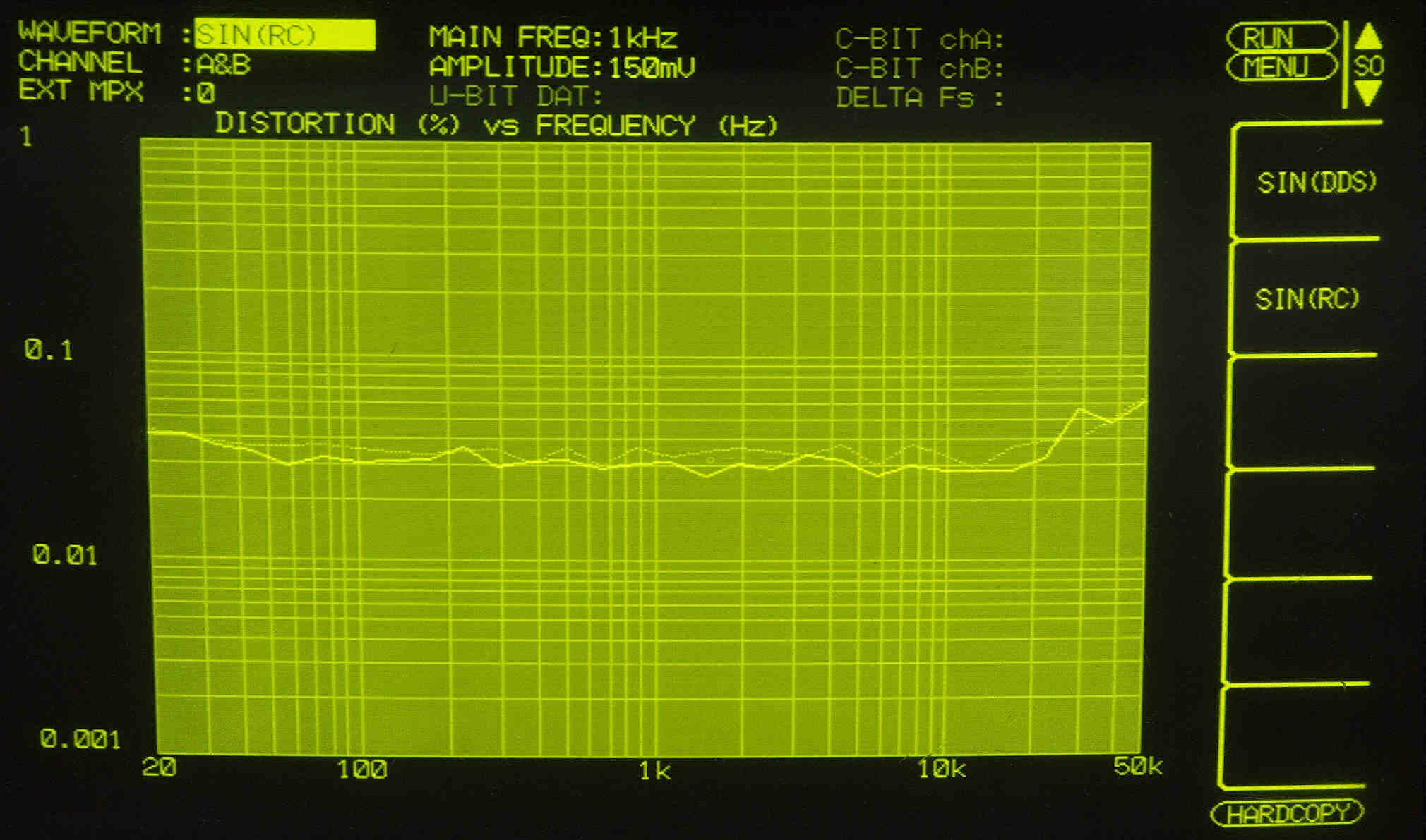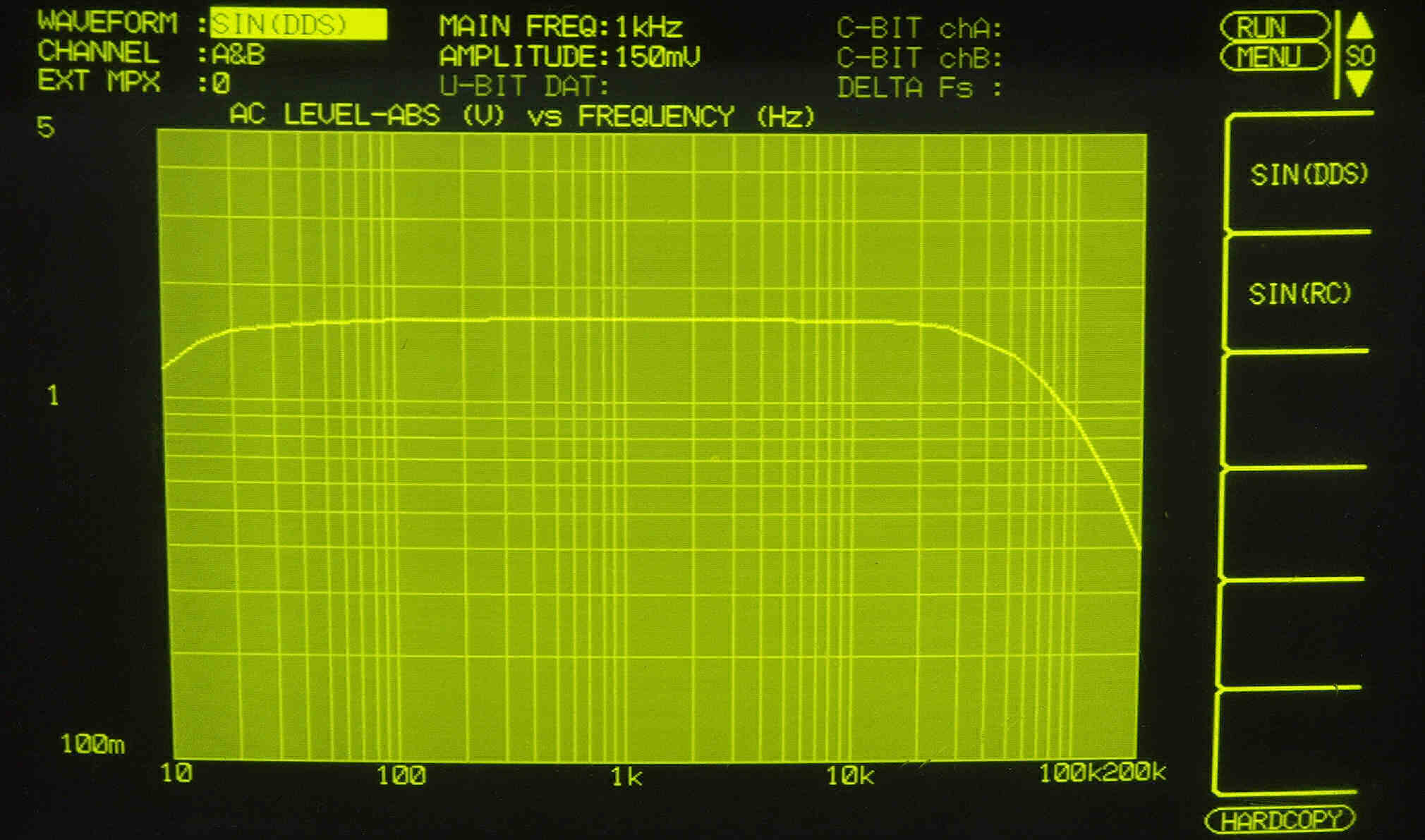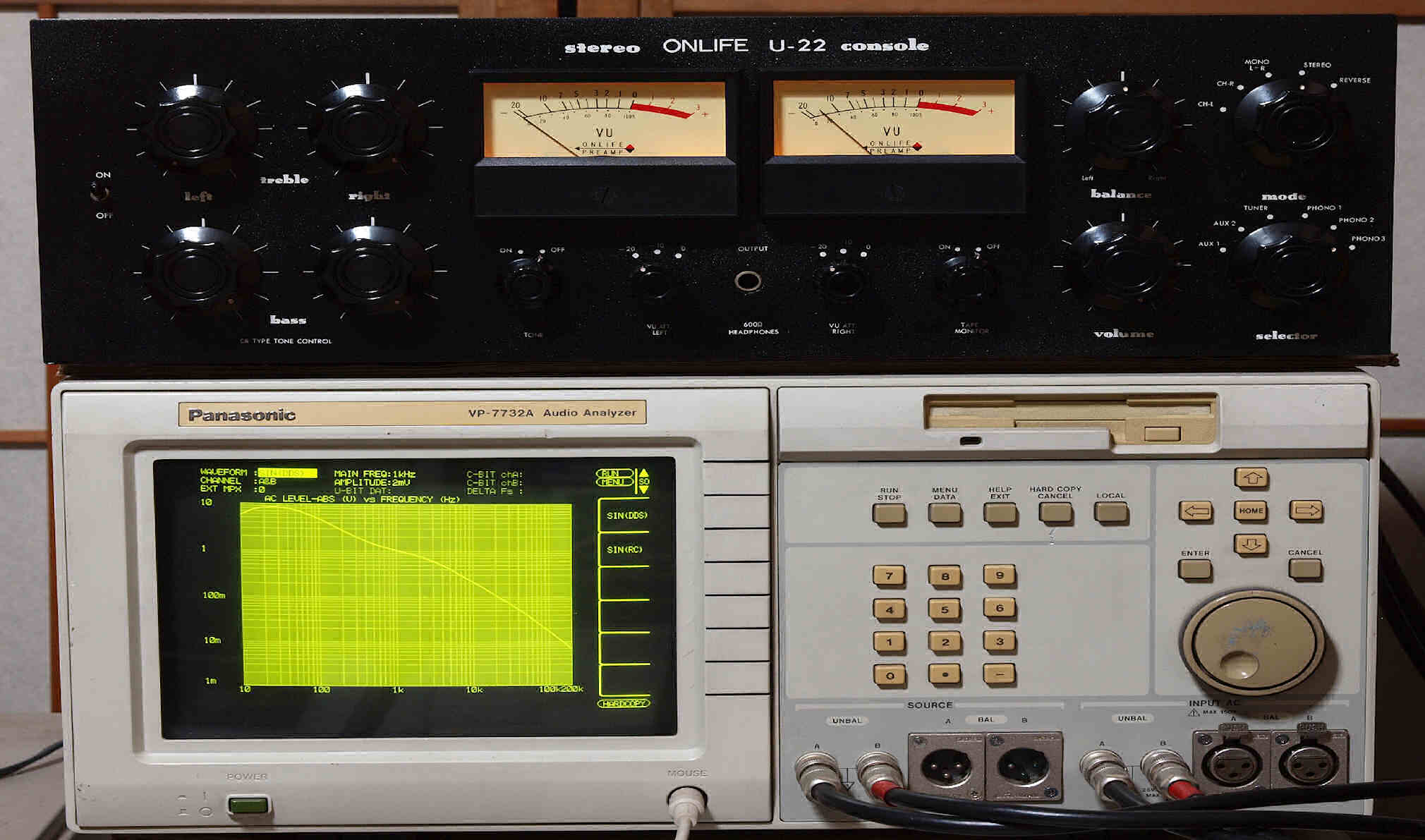 周波数特性 RIAA=30Hz〜15kHz ±0.5dB、 FLAT=32〜32,000Hz±0.5dB