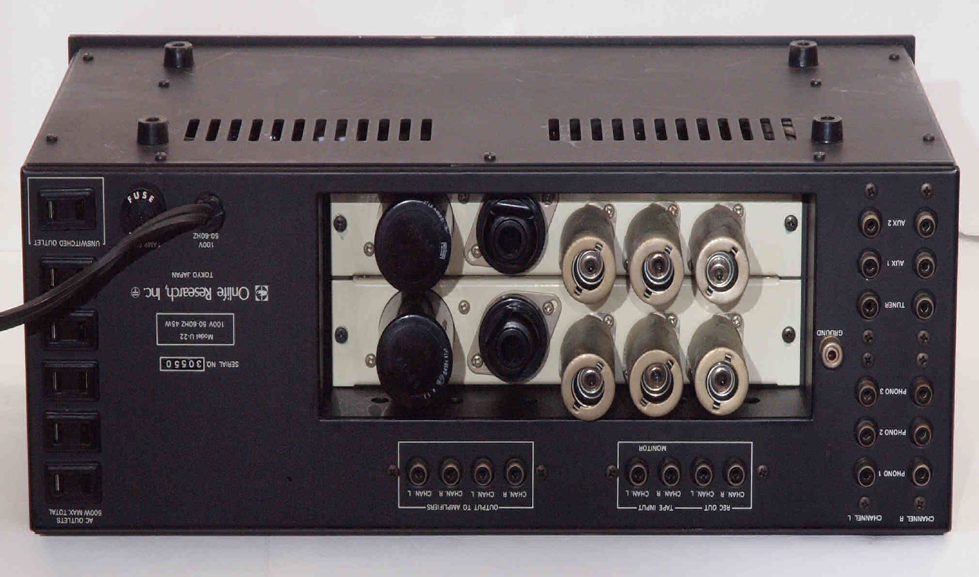 入出力端子 Phono=3系統、 Aux=2系統、 Tuner=1系統、 Tape=1系統、 Pre out=2系統