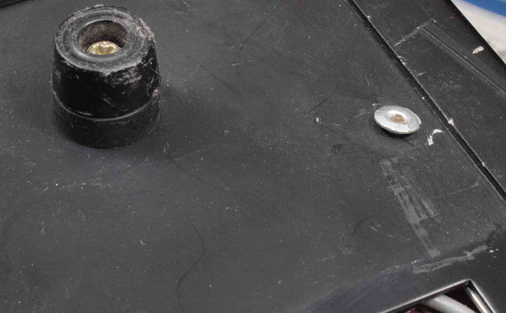 | CF1. 修理前 VUメーター裏取付部。 右側は取り付けナット1個無、1個がビス短い? | ||||||||||||||||||||||||||||||