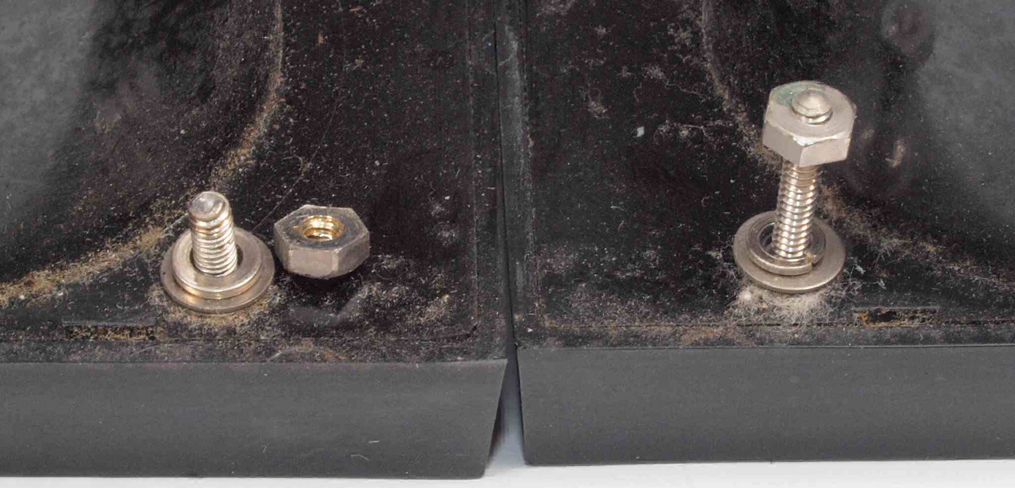 | CF2. 修理中 VUメーター取外。 左側=新しいISOネジ、右側=旧のミリネジ。 | ||||||||||||||||||||||||||||||