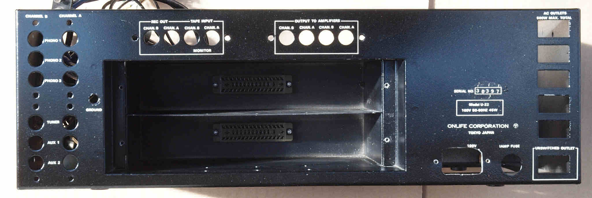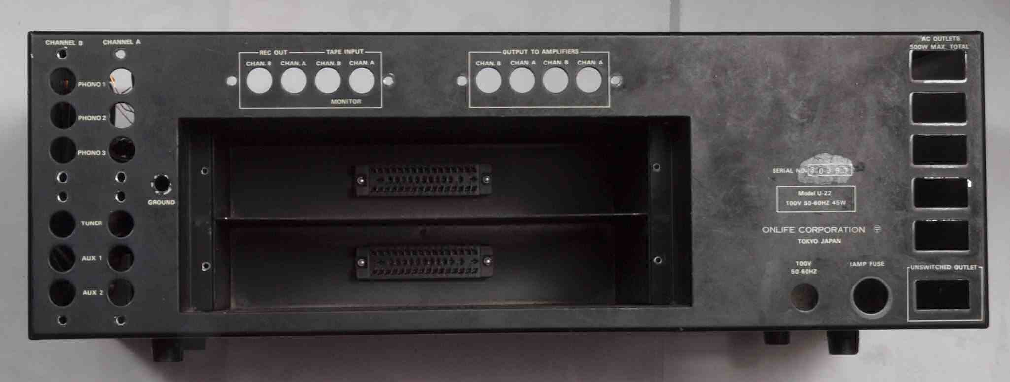 E. 調整・測定 VUメーター校正 F. 上位測定器による 調整・測定 G. 修理費 145,000円 オーバーホール修理。 但し、真空管は別途です。 Y. ユーザー宅の設置状況 S. Onlife Research U−22 の仕様(カタログ・マニアルより) |