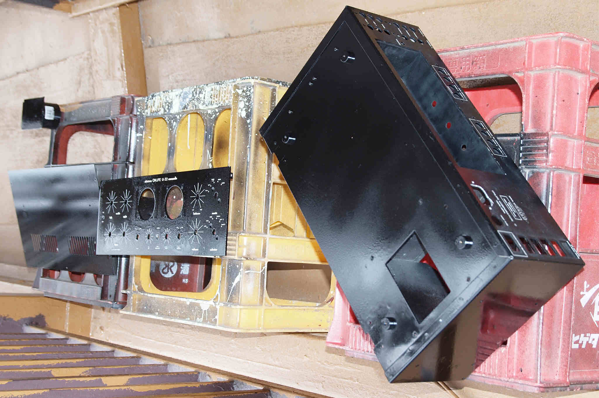 | K. 前パネルとケースの塗装。 画像をクリックすると、大きく(横幅2050ドット)表示されます。 K11. 塗装前 前パネル。 |