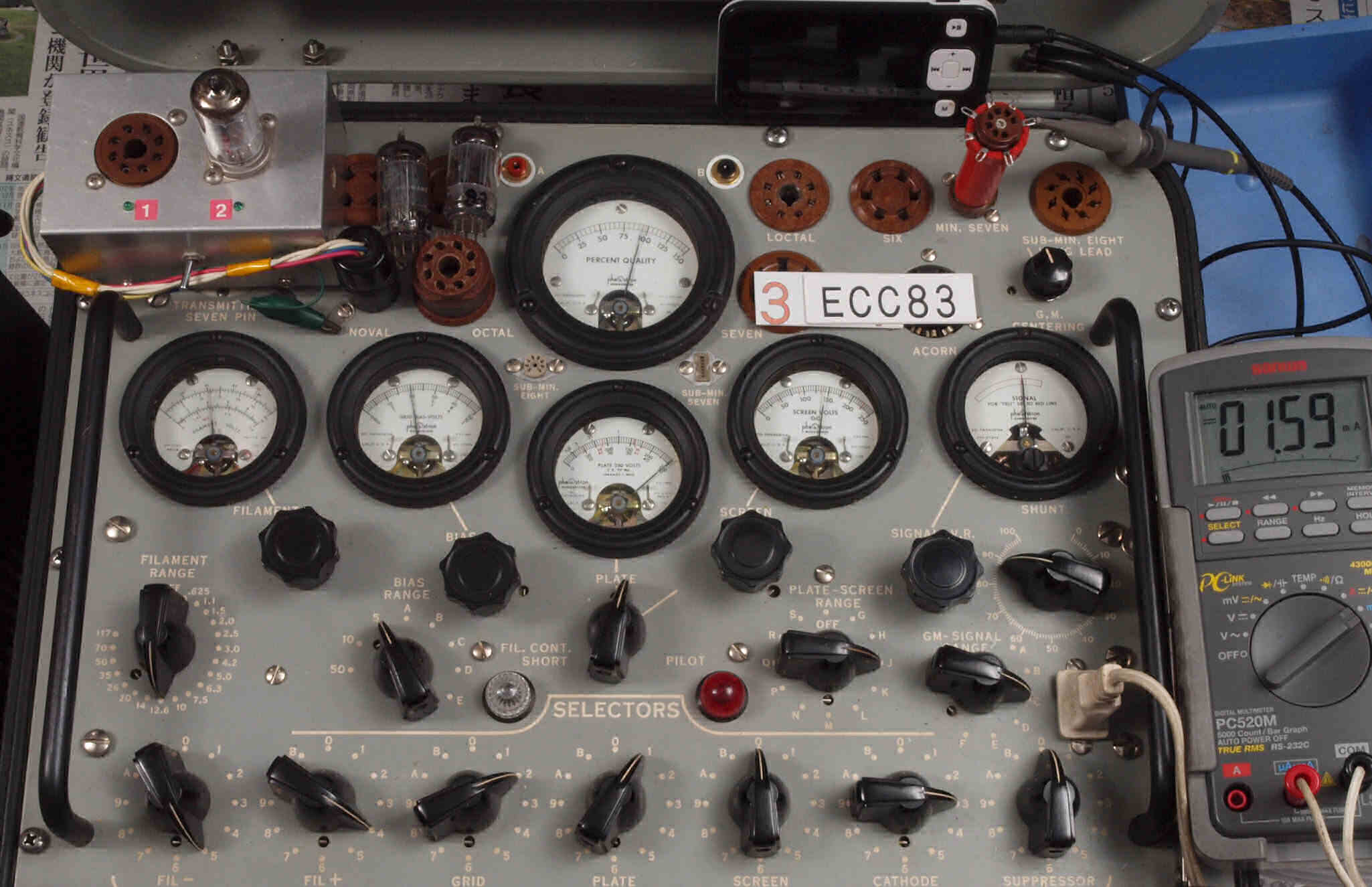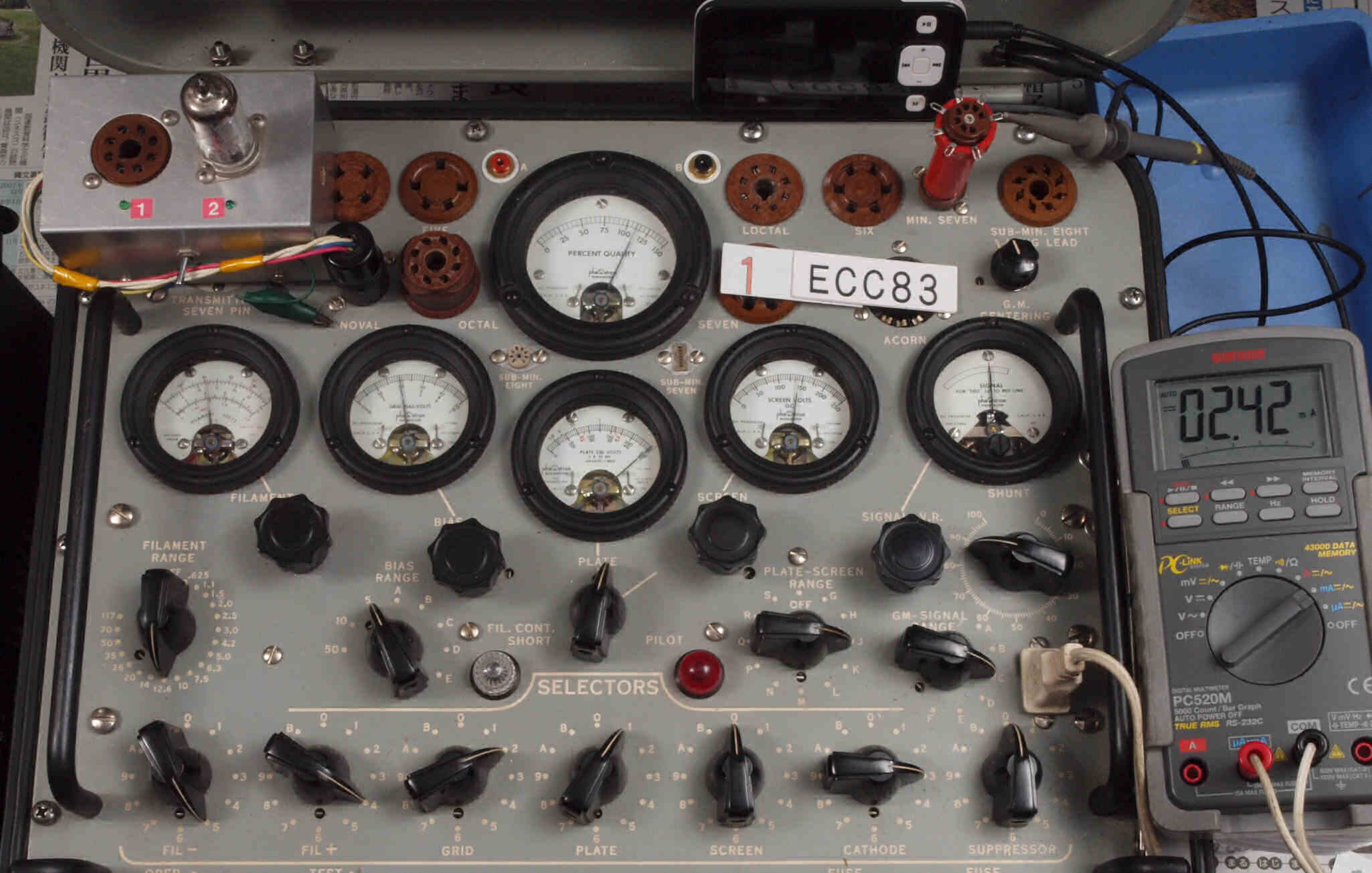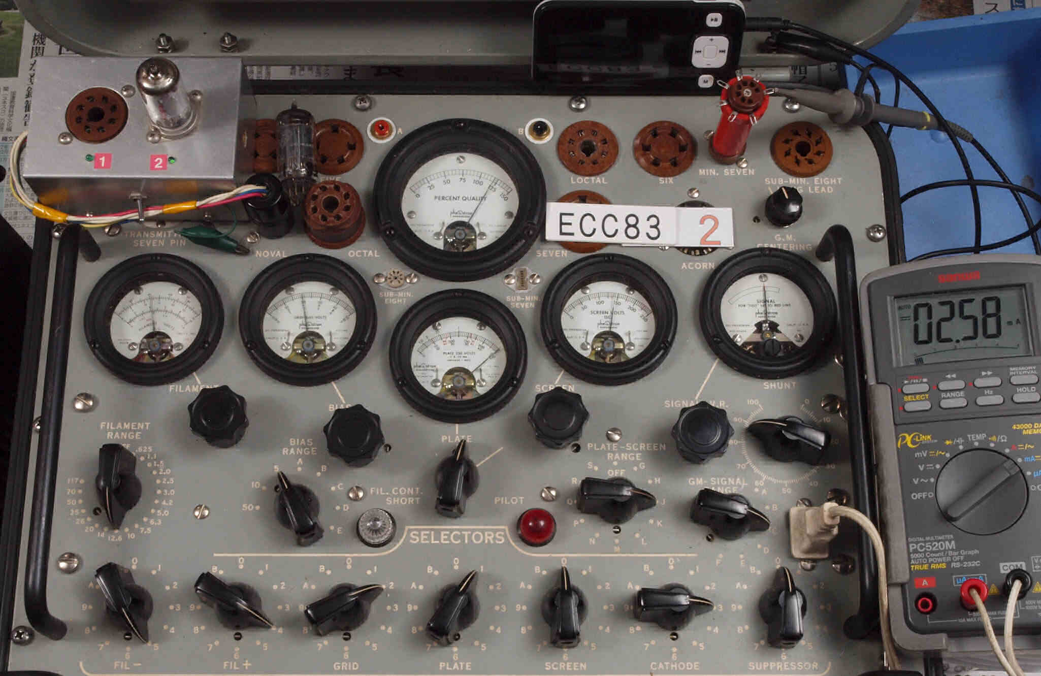 | U62. 付属L側3本目「12AX7」ユニット2。 Gm測定=2400μmho、IP=2.58mA。 | ||||||||||||||||||||||||||||||