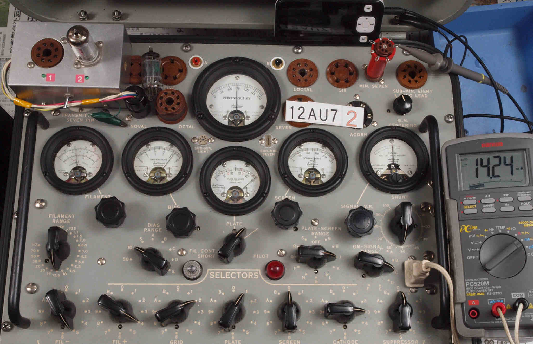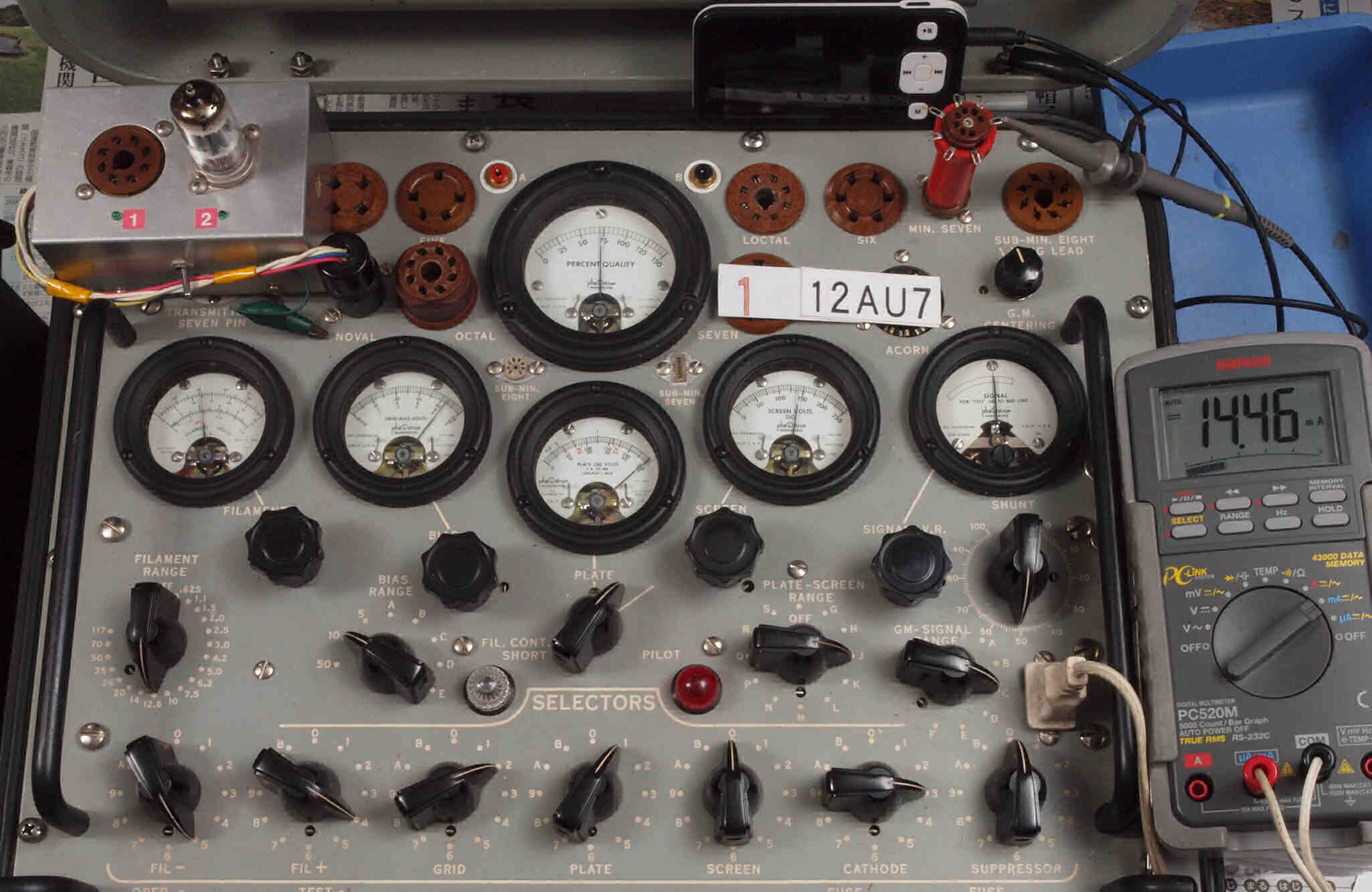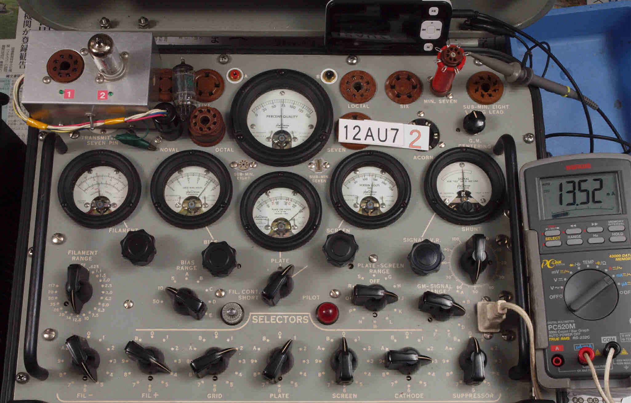| U52. 付属L側「12AU7」ユニット2。 Gm測定=2800μmho、IP=14.46mA。 | ||||||||||||||||||||||||||||||