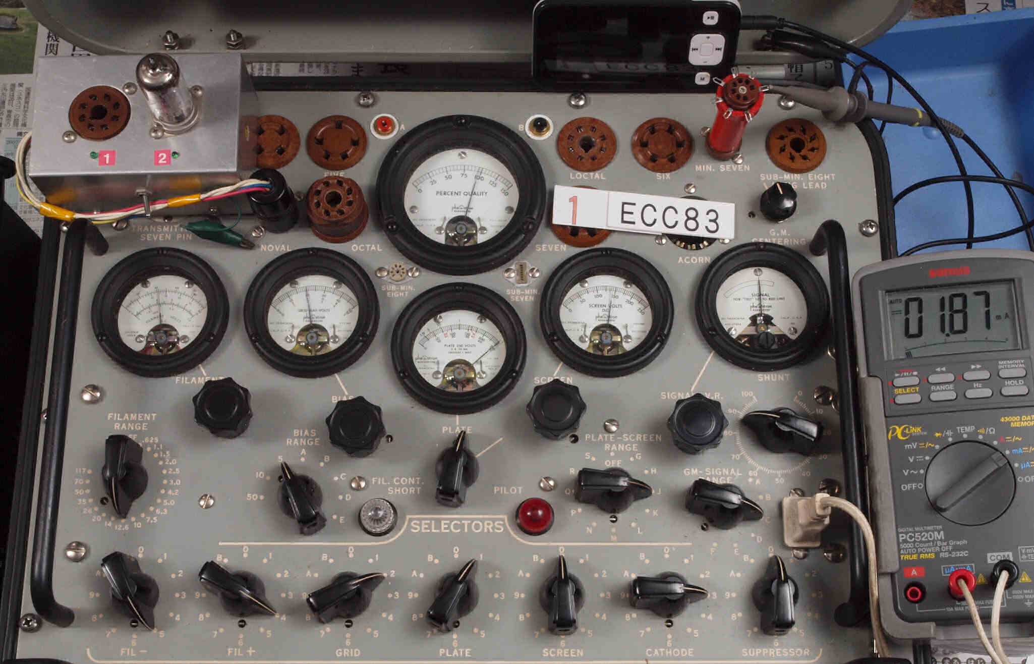 | U61. 付属L側3本目「12AX7」ユニット1。 Gm測定=2200μmho、IP=2.06mA。 Cレンジ=3000μmhoレンジでの測定、「Ep=250V、Eg1=−2V」 |