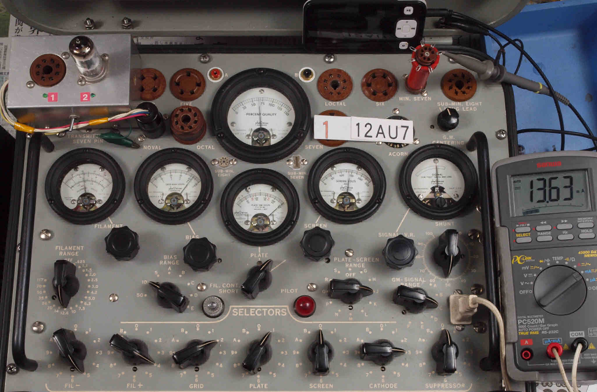 | U22. 付属R側「12AU7」ユニット2。 Gm測定=2800μmho、IP=13.52mA。 | ||||||||||||||||||||||||||||||