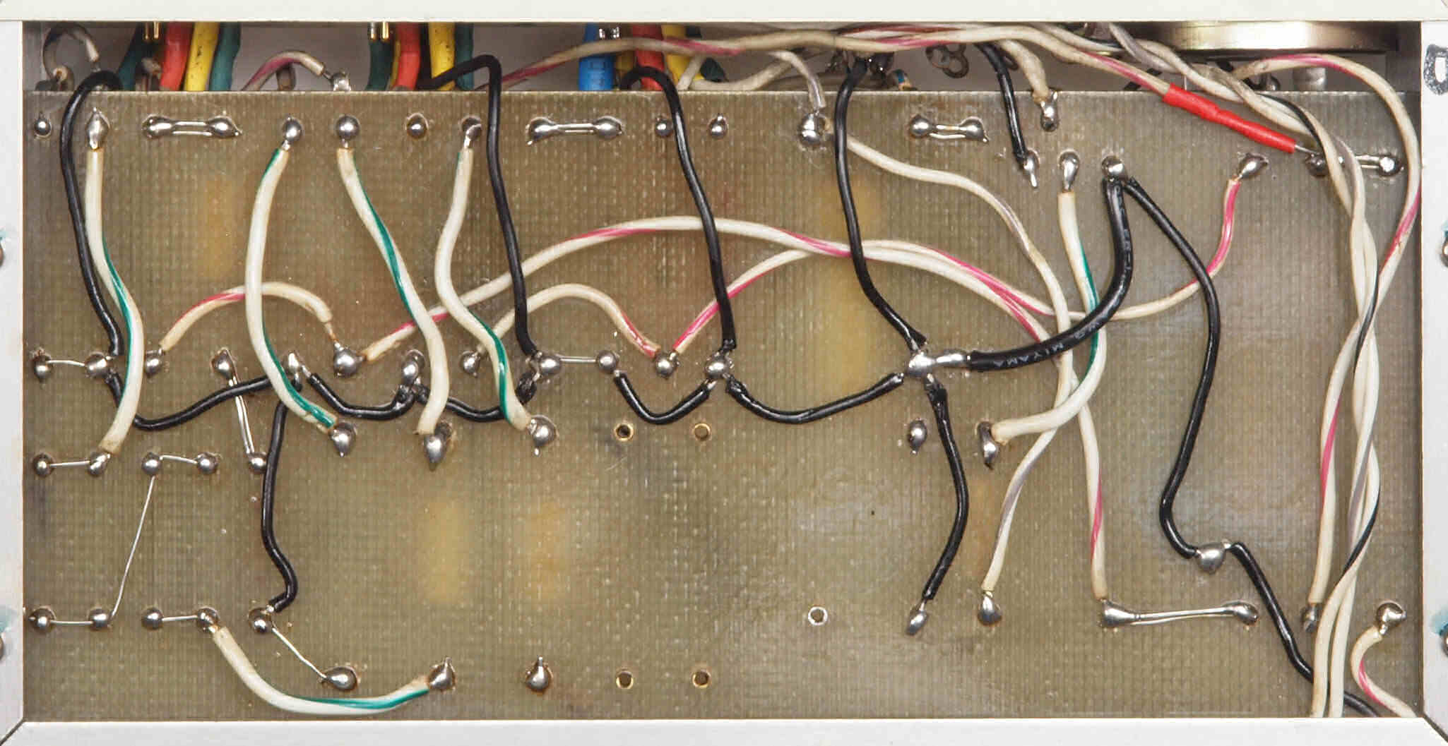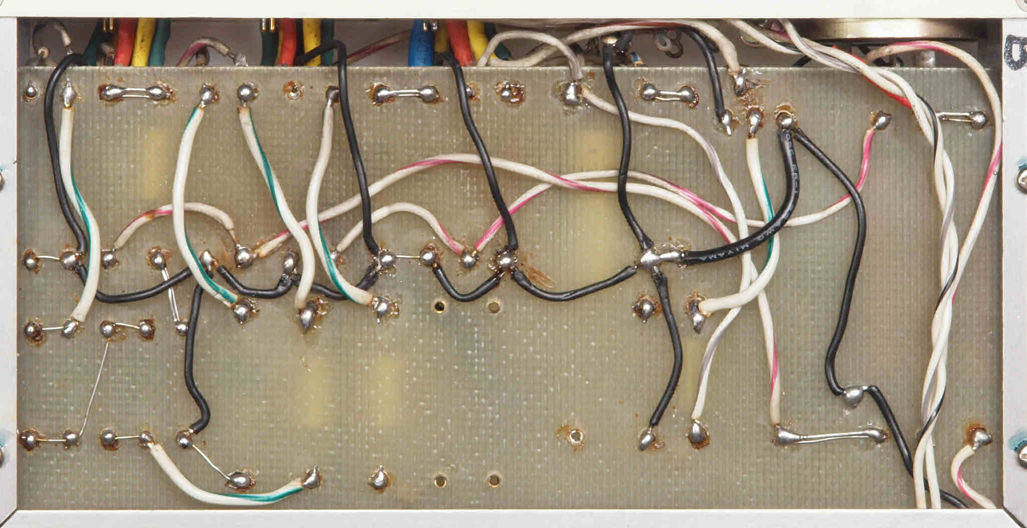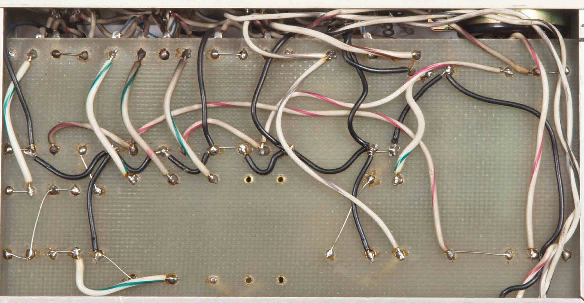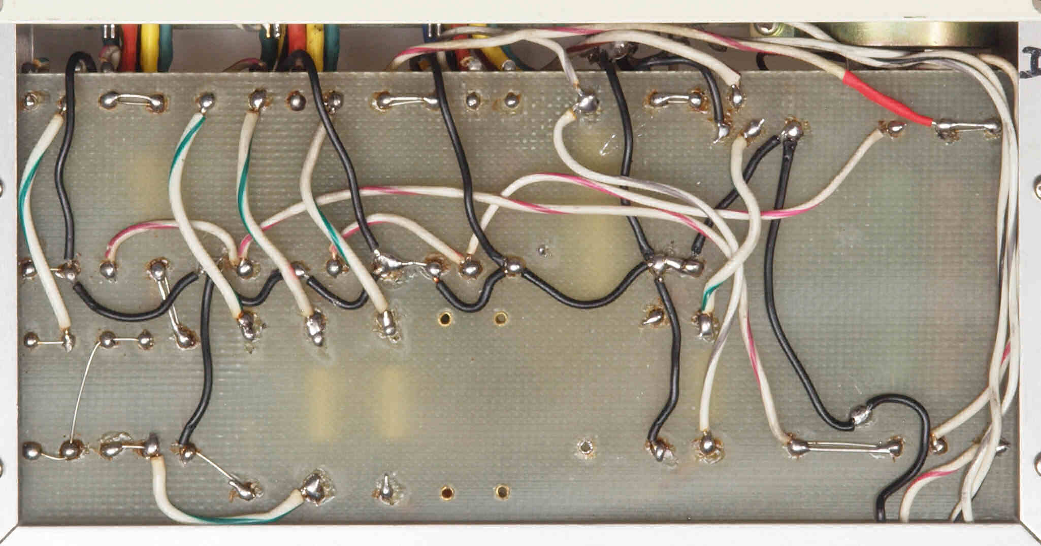 | CE4. 修理後 電源部裏。フイルムコンデンサー1個、抵抗1個追加。 | ||||||||||||||||||||||||||||||