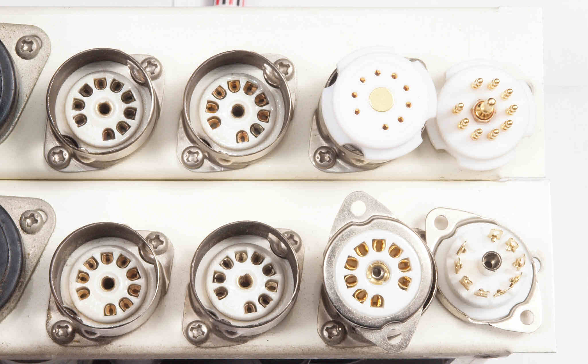 | AB2. 点検中 真空管ソケット、 左=タイト製、 右=テフロン製が選択。 | ||||||||||||||||||||||||||||||
