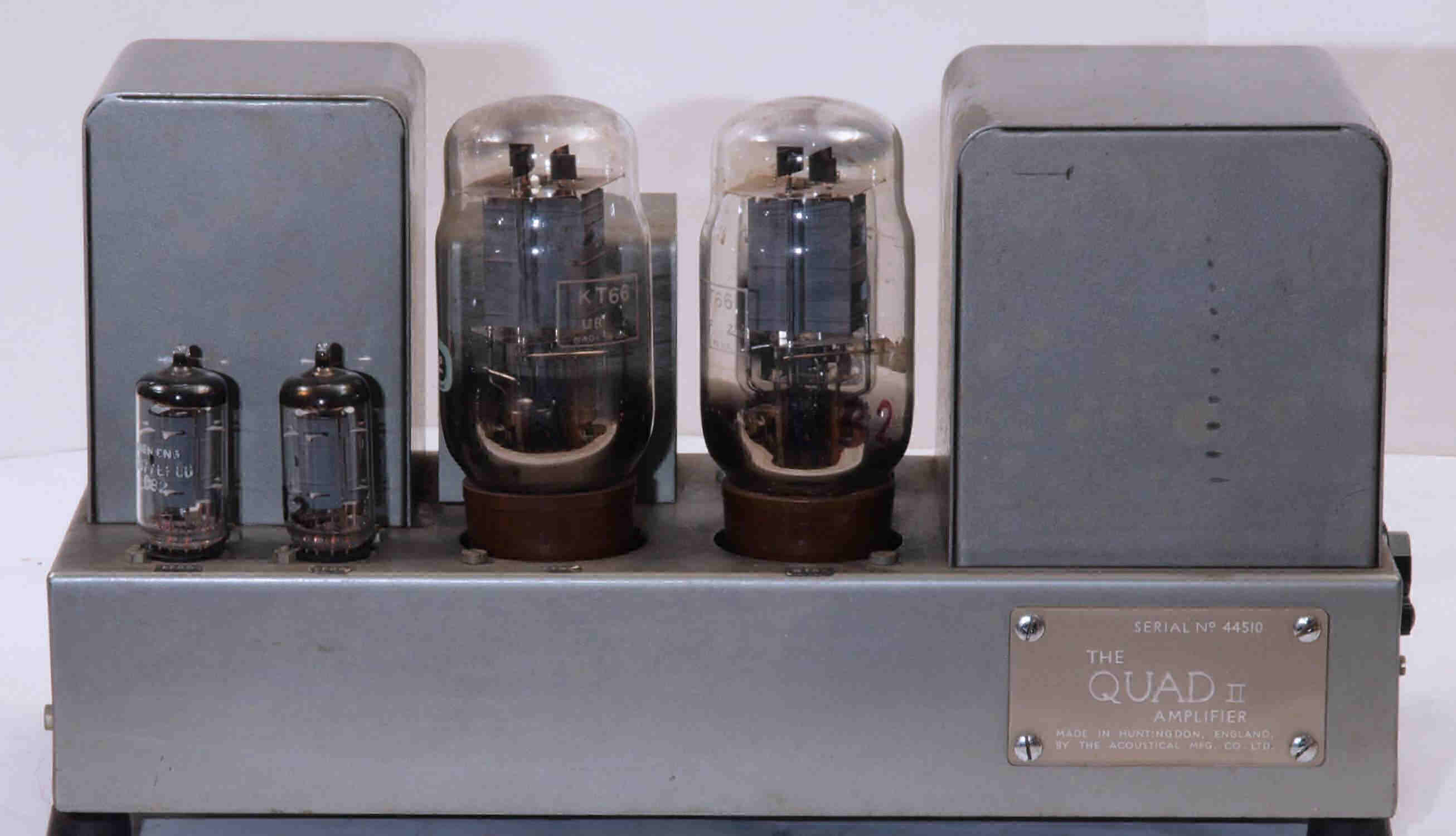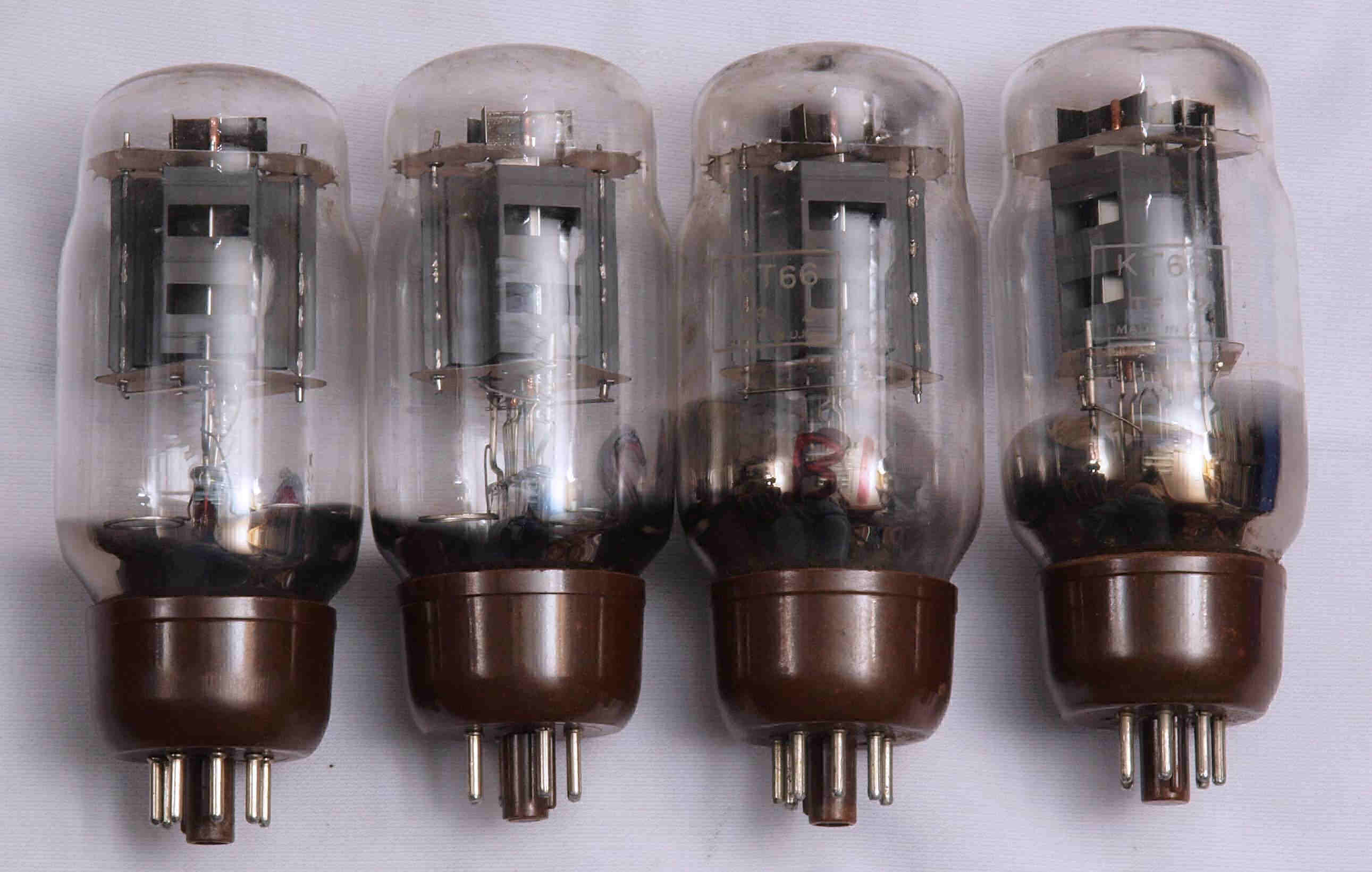 | U2. 付属真空管 「KT66」、左から1、2本目=QUADU A用。3、4本目=QUADU B用。 | ||||||||||||||||||||||