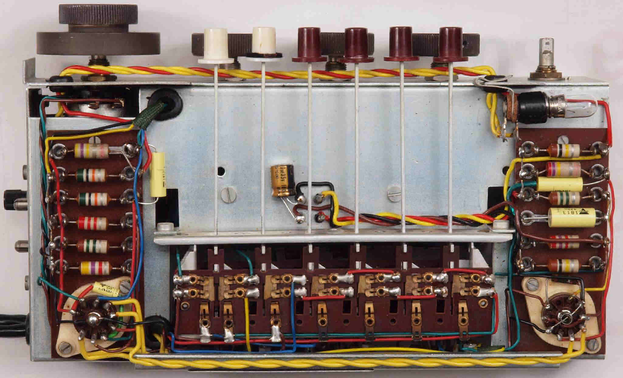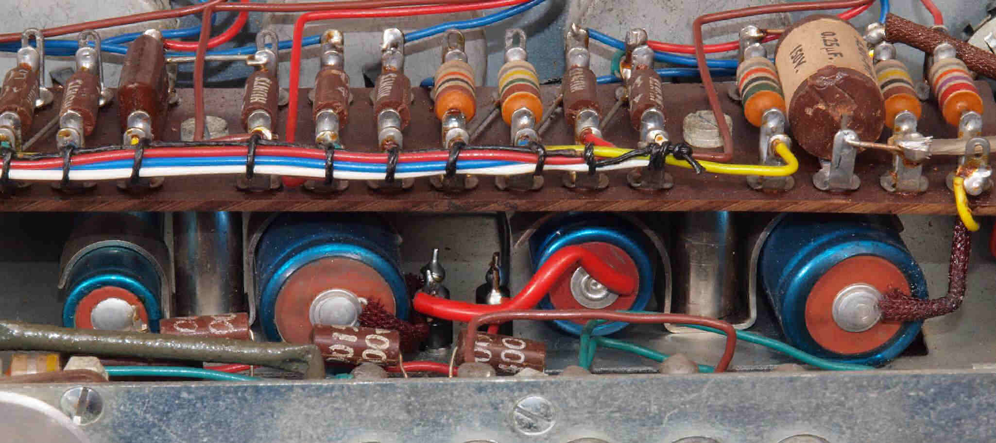 | C22. 修理後 ケースから出し、下から見る。 電解コンデンサー1個、フイルムコンデンサー4個交換。 | ||||||||||||||||||||||||||