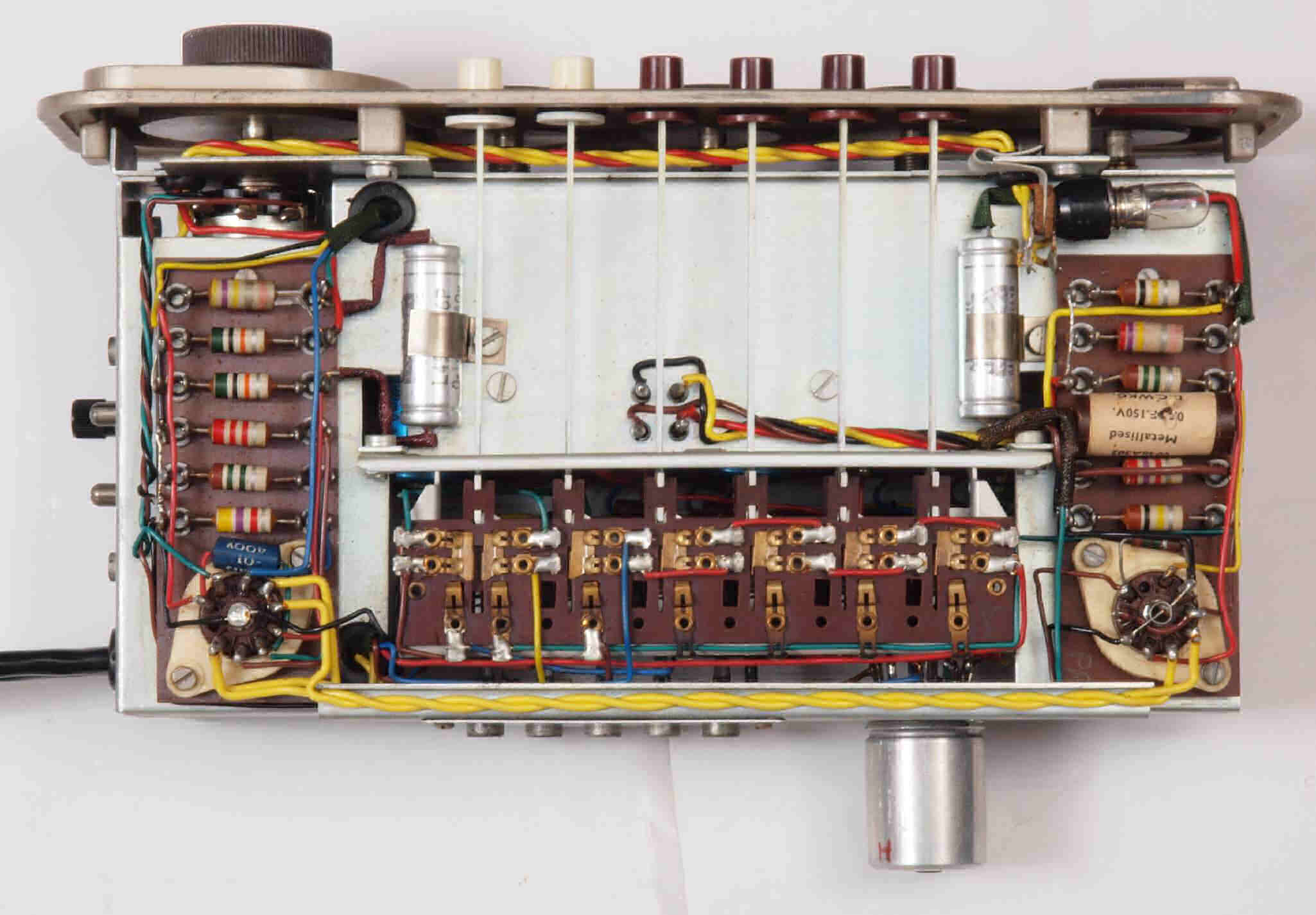 | U. TubeTester HickokTV−2B/Uによる付属真空管測定 。 真空管ハンドブック(規格表)の、 12AX7(ECC83)相互コンダクタンス=1600μmho「Ep=250V、Ip=1.2mA、Eg1=−2V」。 6267(EF86)相互コンダクタンス=2000μmho「Ep=250V、Ip=3mA、Esg=140V、Eg1=−2V」。 1960/1962/1964/1966ナショナル真空管ハンドブック、1995オーディオ用真空管マニアル、60/62/69東芝電子管ハンドブック、1962日立電子管ハンドブック、1965/1971全日本真空管マニュアル、RC15/19/26/27/28/29/30 Receiving Tube Manual、1966/実用真空管ハンドブック、1995世界の真空管カタログより。 |