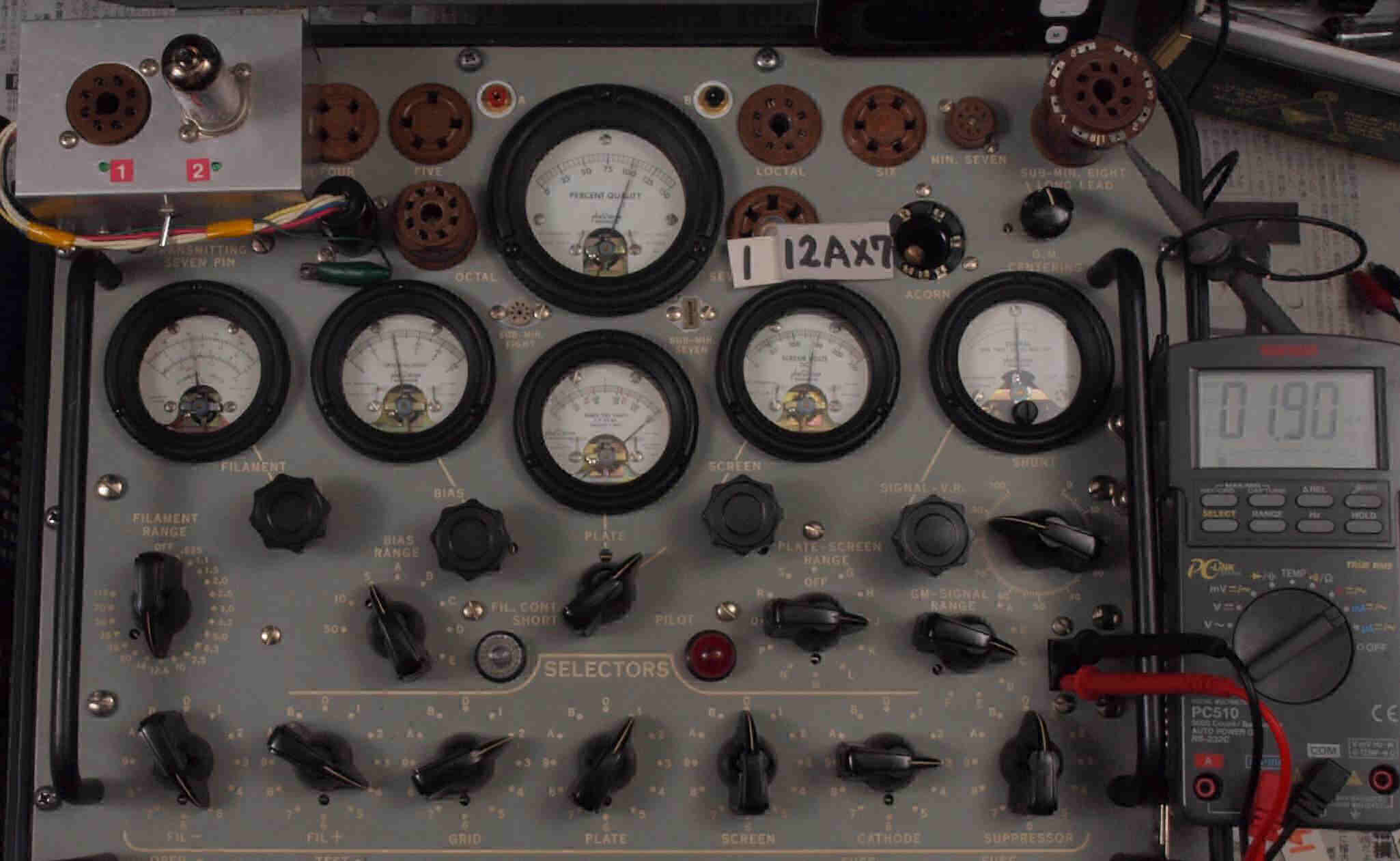 | U11. 付属「12AX7」 ユニット1。 Gm測定=2040μmho、IP=1.90mA。 Cレンジ=3000μmhoレンジでの測定、「Ep=250V、Eg1=−2V」 |