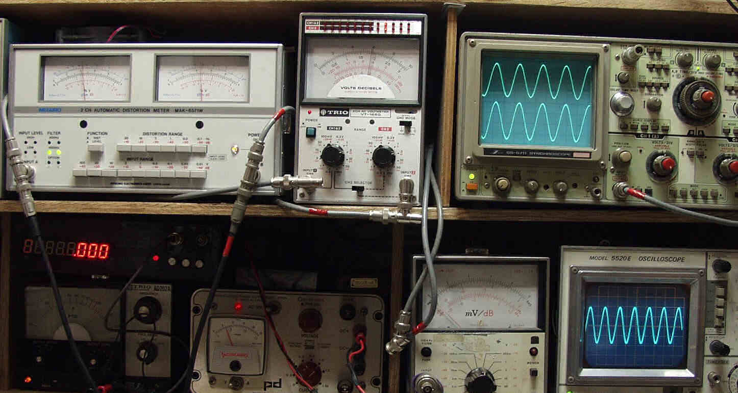 9. 出力測定 2V 歪み率0.06% AUX入力=右下オシロ=1000HZ