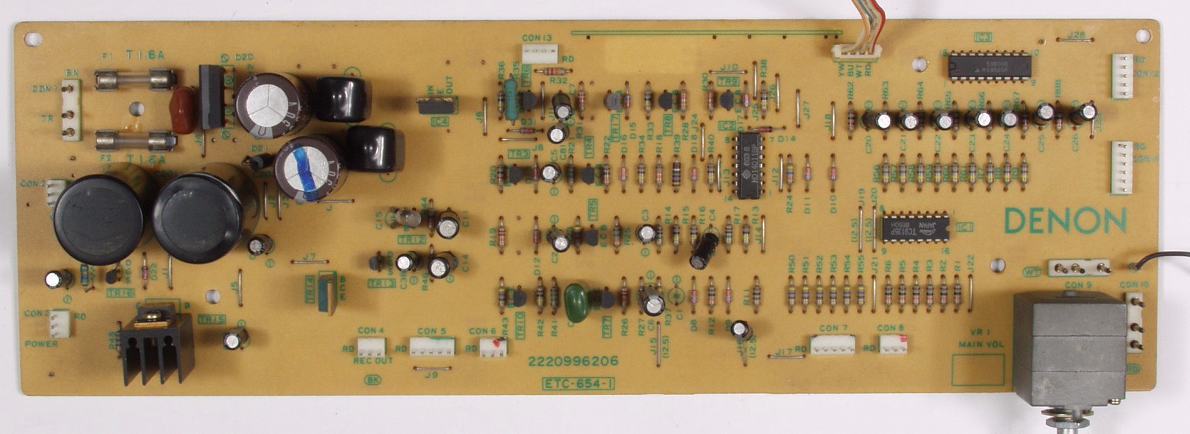 | C. 修理状況 C1A. 修理前 EQ−HEAD-AMP基板 左=MM 中=MC 右=トランス使用MC 上右端がMC−トランス | ||||||||||||||||||||||||||||||||||||||||||||||||||||