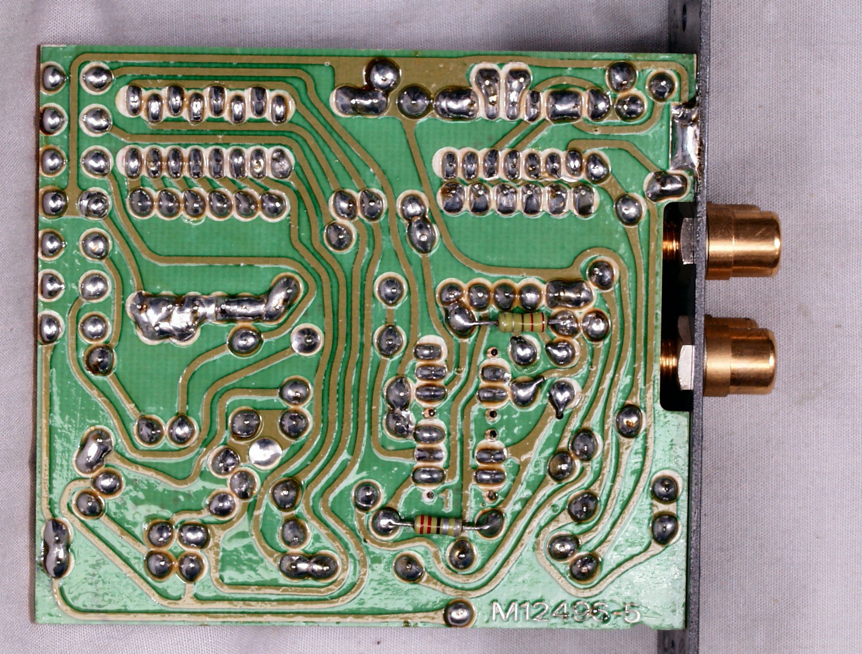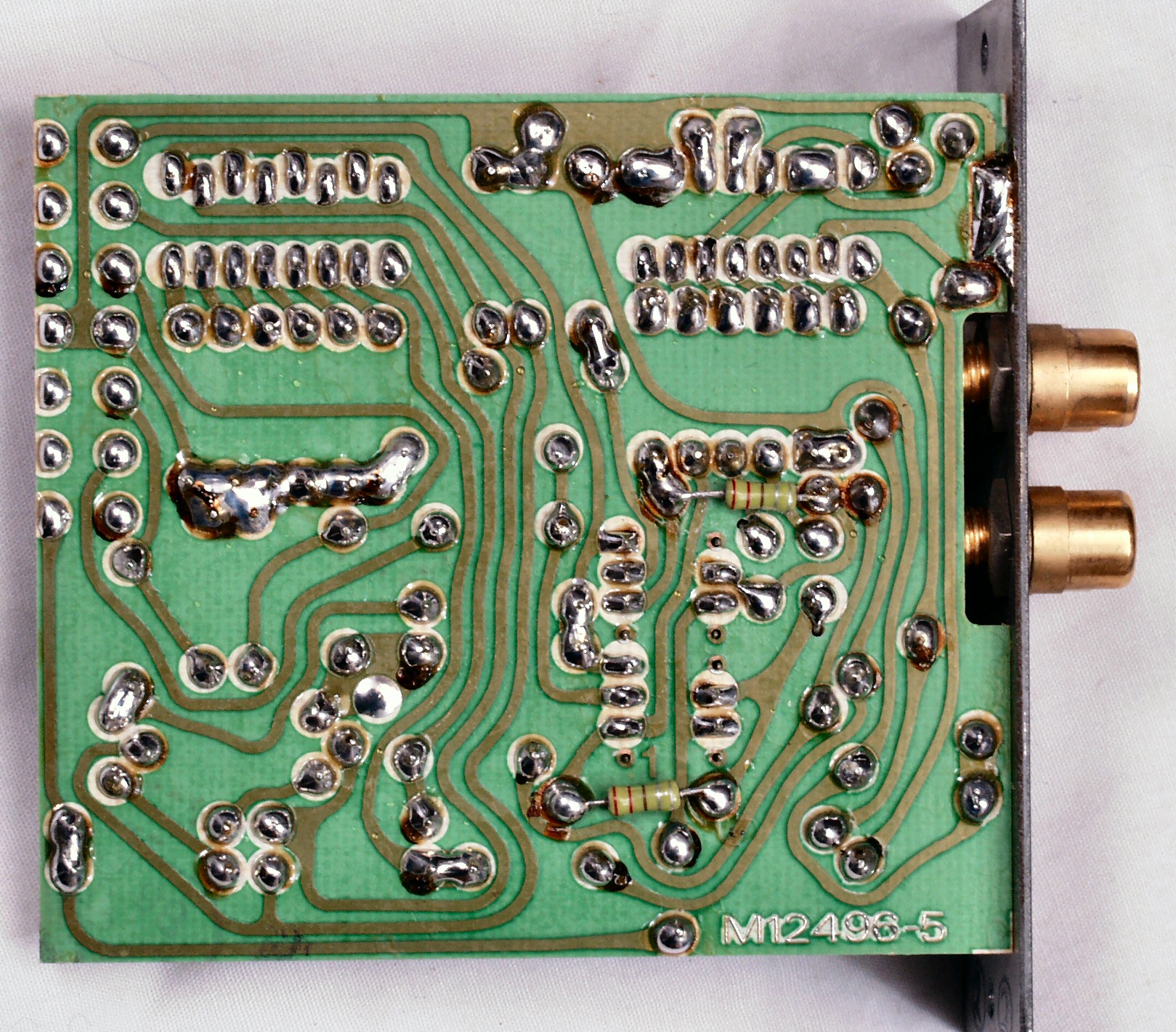 C2D. 修理(半田補正)後  TAPE2入力基板裏 全半田やり直し