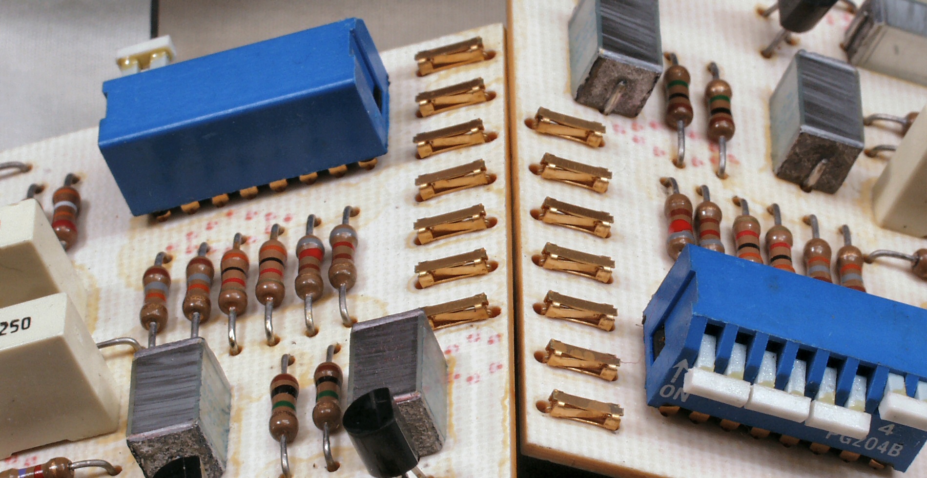 C1A. 修理前 TAPE1入力基板 上のデイップSWはPlayとRecordのレベル調整
