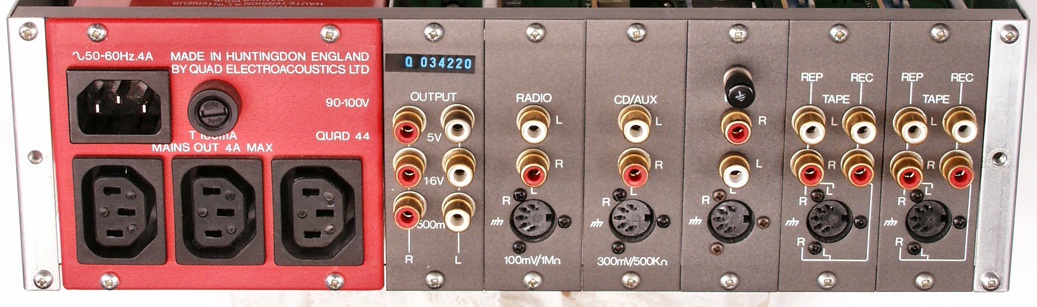 • 5.QUAD44は、購入時にMC用のイコライザに付け替えましたが、不思議なことに、他のRCA 端子とLR(赤白)の配列が上下逆になっております。英国人のジョークでもないと思 うのですが。
