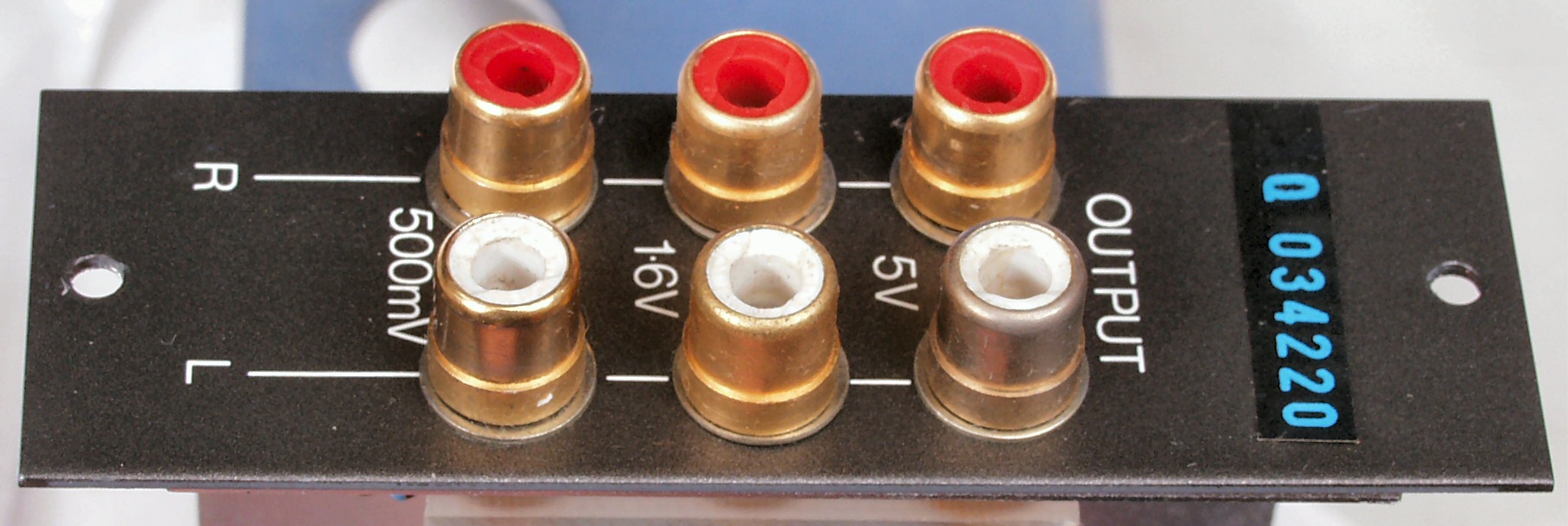 C6A. 修理前  出力RCA端子。 何と5V/1.6Vの出力端子有り、真空管AMPも十分駆動できる