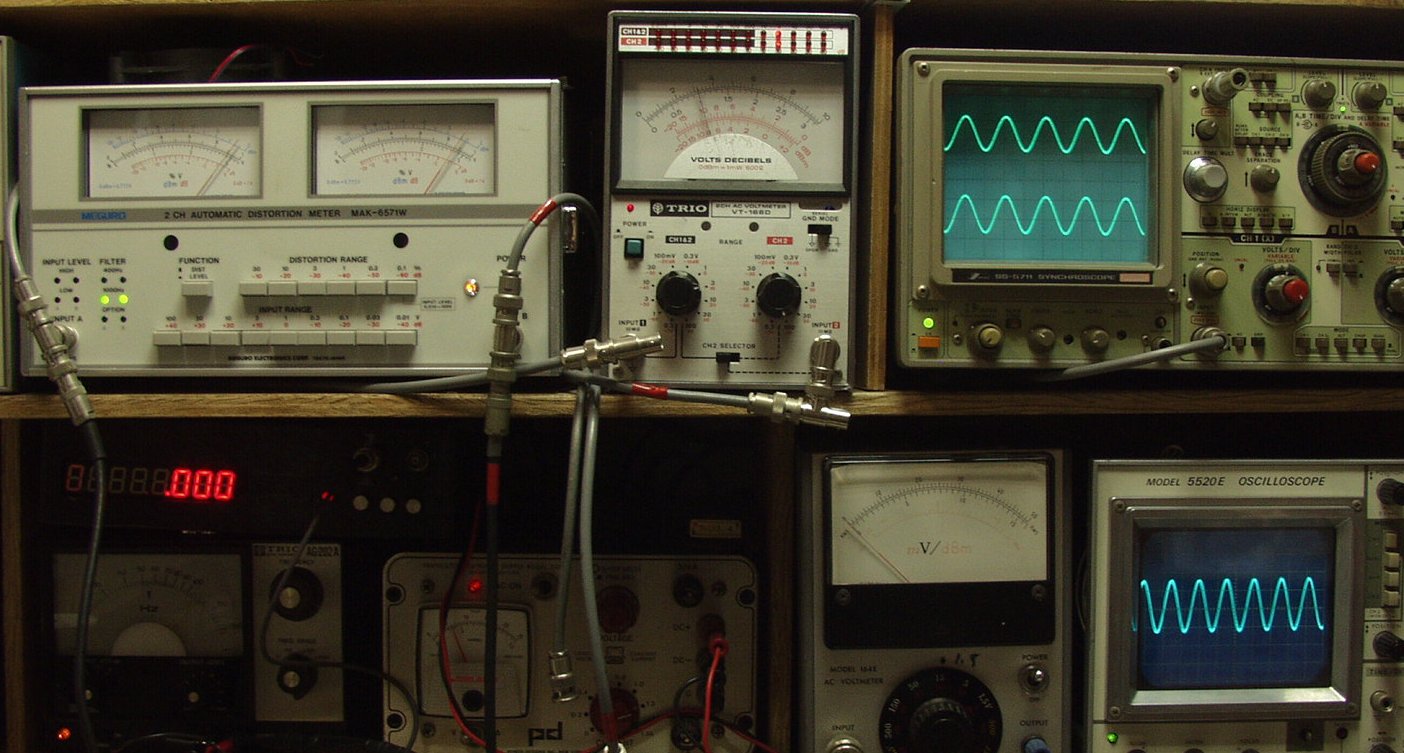 4. 出力測定 1V 歪み率0.09% MM入力=右下オシロ=1000HZ