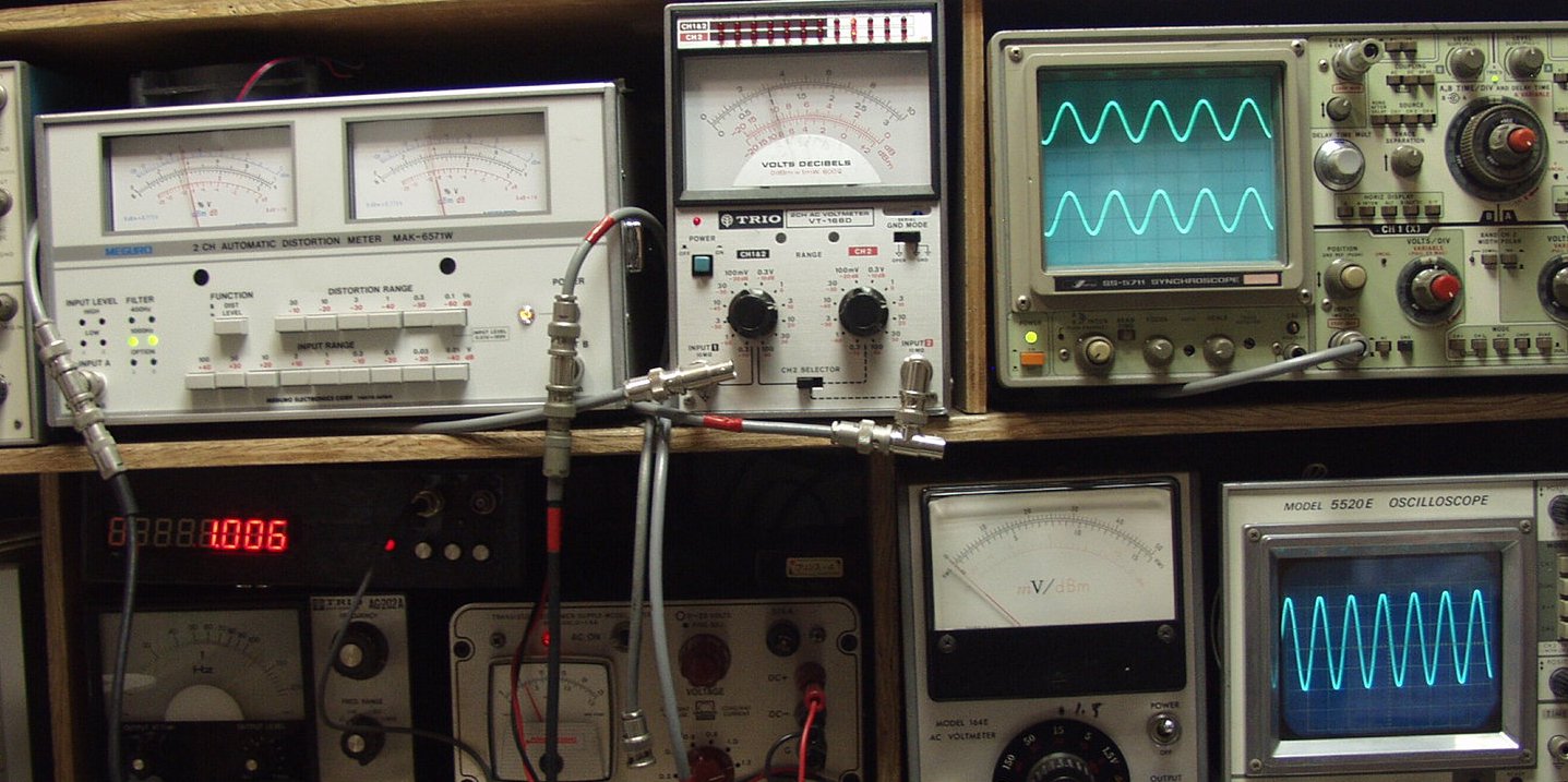 5. 出力測定 1V 歪み率0.09% MM入力=右下オシロ=400HZ