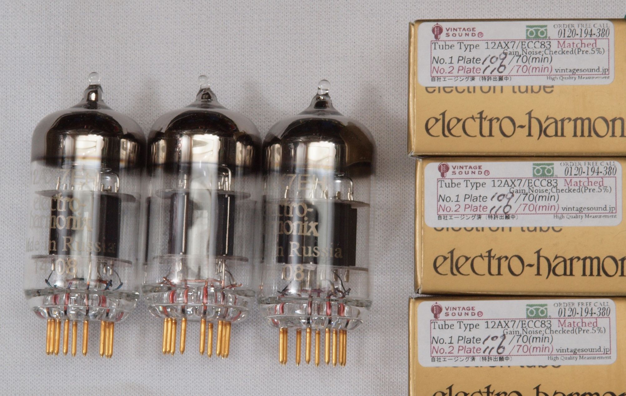 アマゾン経由ヴィンテージサウンドにて 12AX7(ECC83)EHゴールド3本マッチ 高ゲイン9,504円。