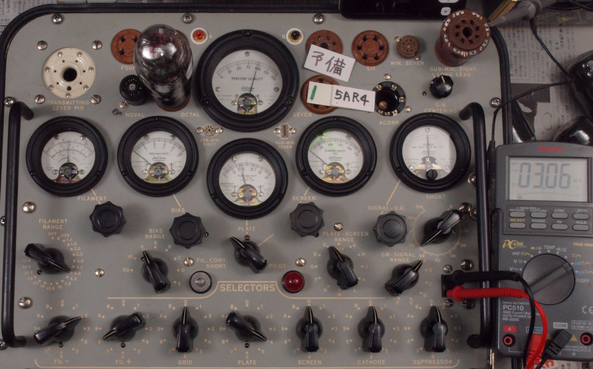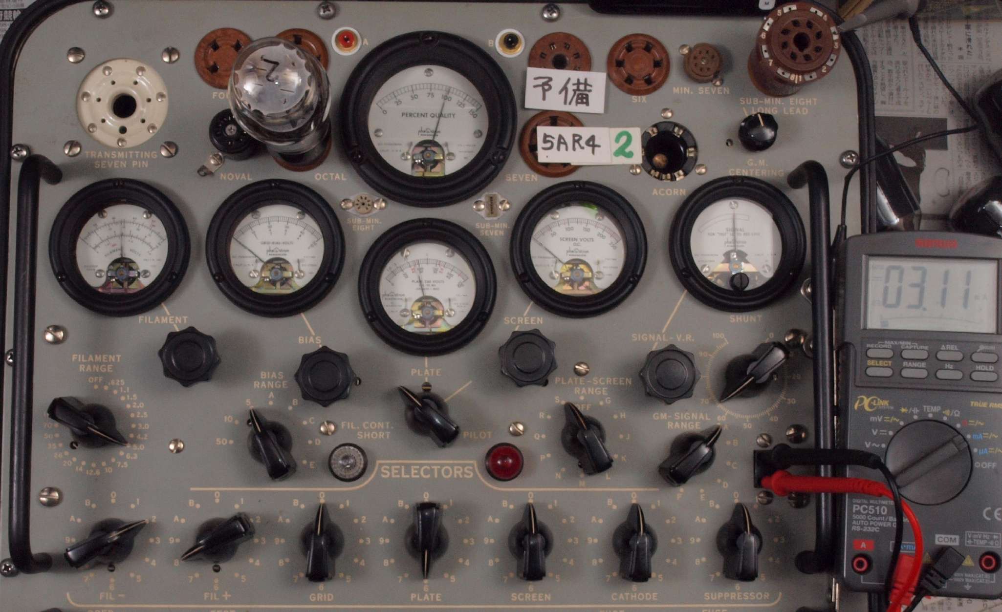 | 12AX7(ECC83) Gm、IP測定。 EF86(6267) Gm、IP測定。 KT66(5881) Gm、IP測定。 GZ32(5V4) エミッション測定。 |